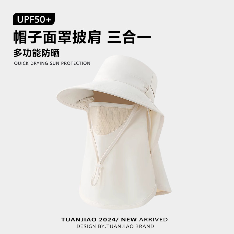 📚 全方位防晒帽子面罩一体女夏季遮阳防紫外线太阳帽披肩护颈钓鱼帽