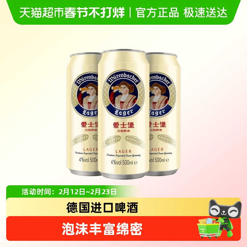 📚 【进口】爱士堡拉格啤酒500ml*3听麦香浓德国精酿4%vol拉罐啤酒