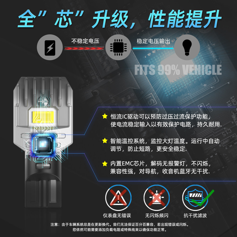 📚 2025新款汽车T15倒车灯高亮LED车灯泡刹车灯改装W16W改装912升级