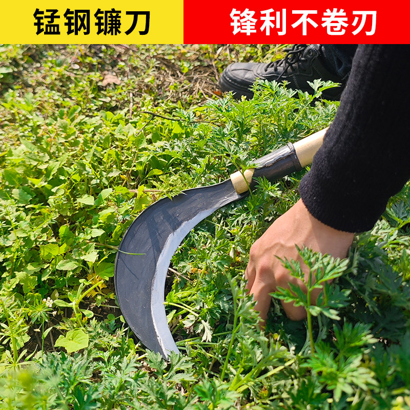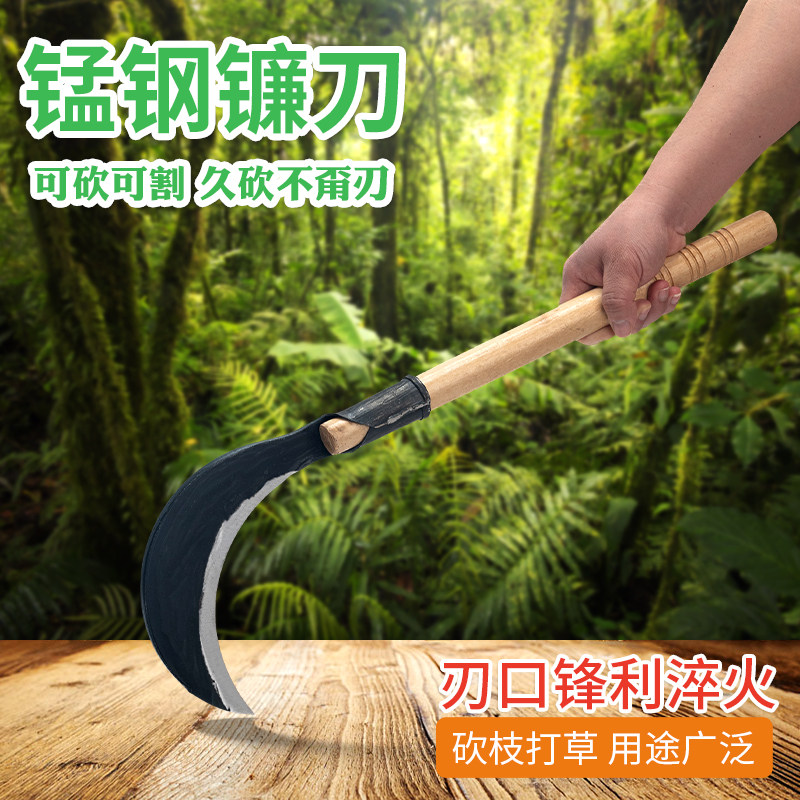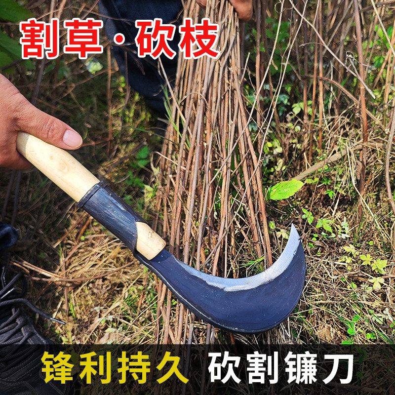 📚 老式锻打镰刀割草刀砍割两用开荒长柄弯刀农用锋利打草刀柴刀户外