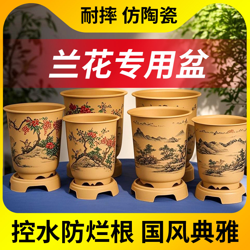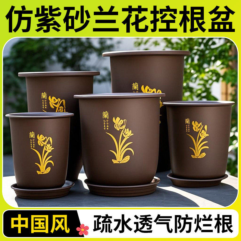 📚 仿紫砂兰花专用盆花盆兰草君子兰大花惠兰吊兰蝴蝶兰大号精品特价