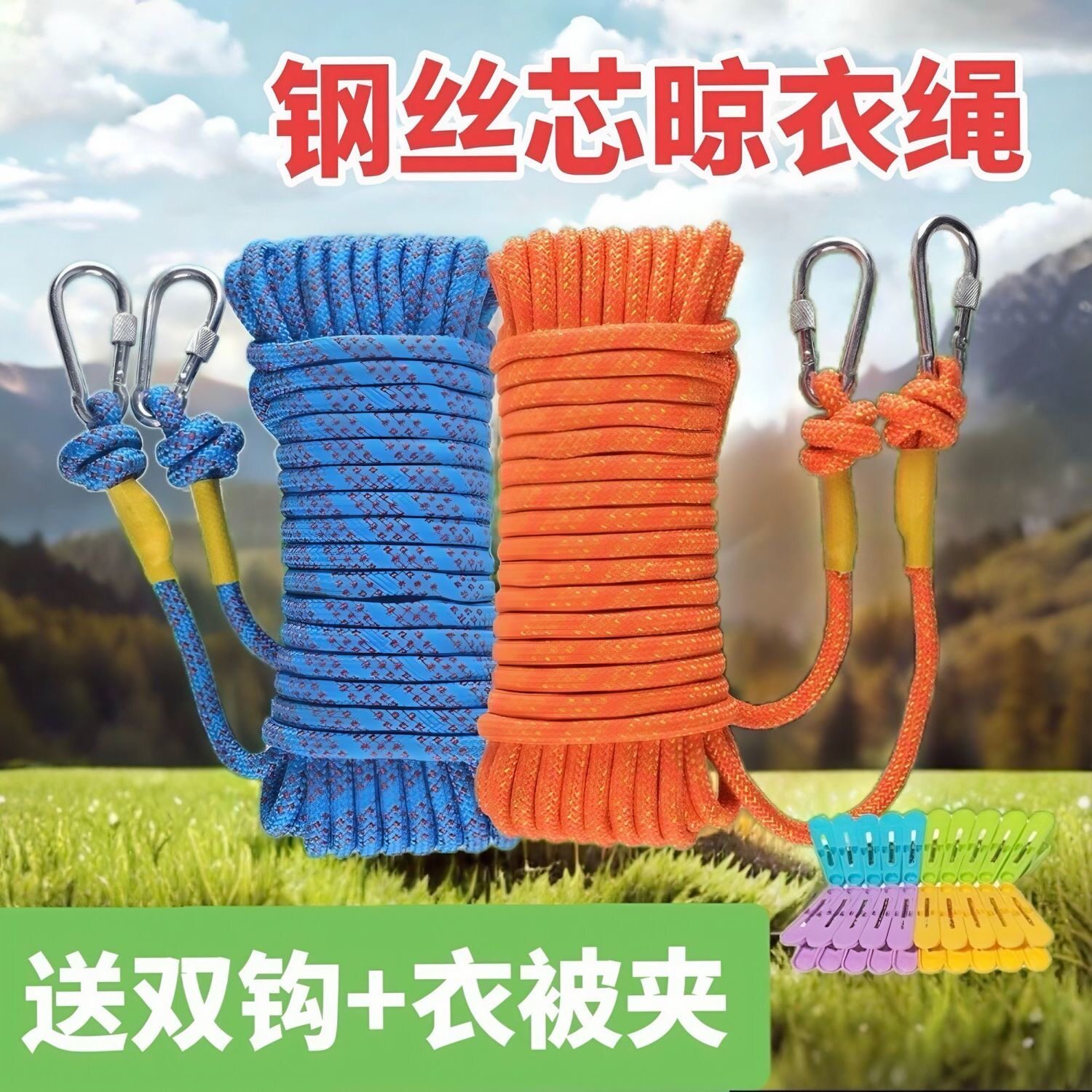 📚 加粗晾衣绳钢丝芯绳户外晒被子神器室内拉紧绳多功能挂衣绳子耐磨