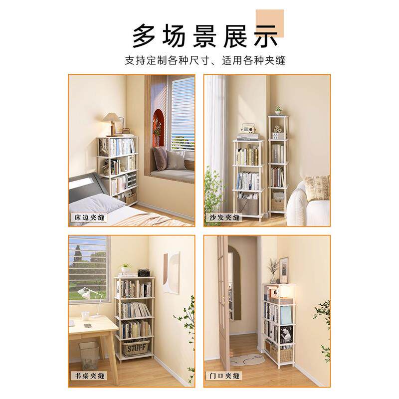 📚 夹缝书架置物架卧室转角窄款落地分层收纳架立式一体靠墙多层书柜
