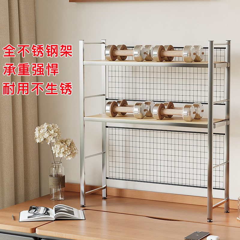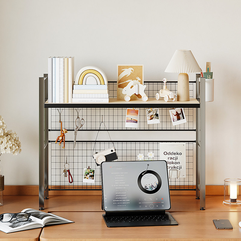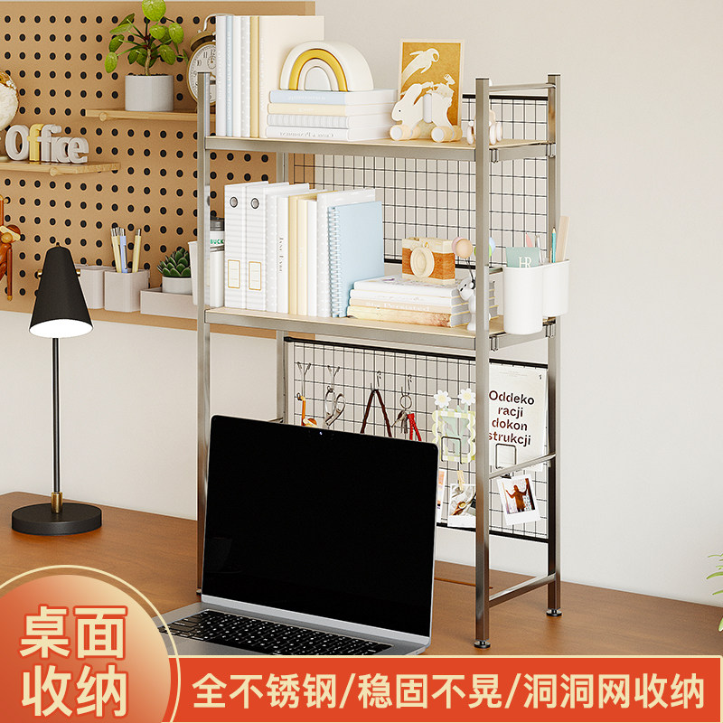 📚 不锈钢洞洞网桌面置物架带网格书架书桌收纳多层架子学生电脑桌上