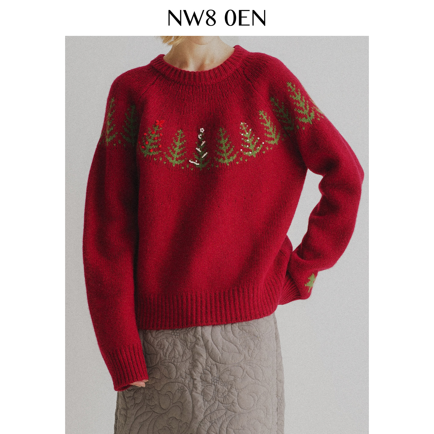 📚 胡可的买手店 NW80EN慵懒风复古简约手工钉珠圆领套头针织毛衣