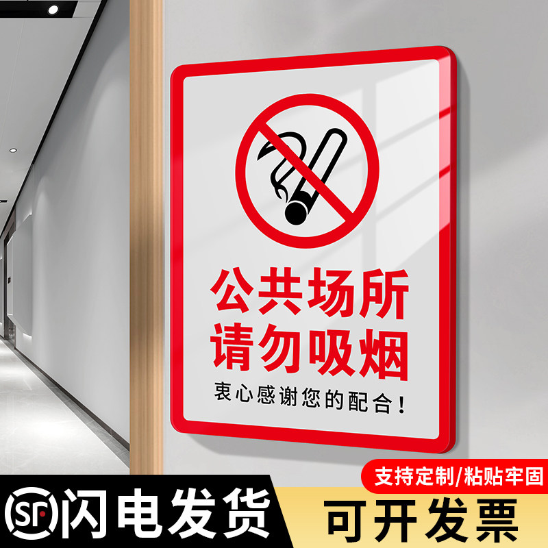 📚 禁止吸烟提示牌定制公共场所办公室卫生间室内请勿抽烟有害健康安全警示贴纸无烟区禁烟亚克力温馨墙贴标志贴