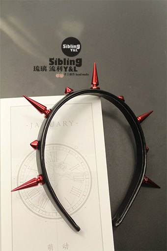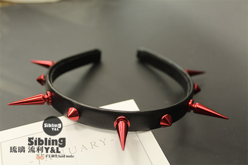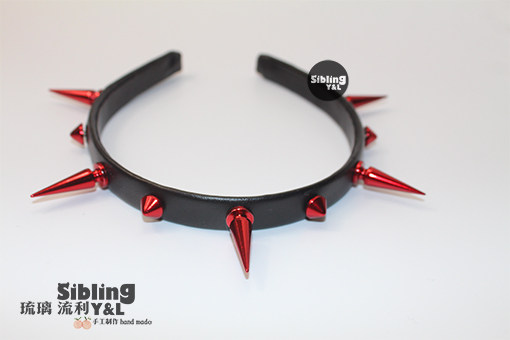 📚 琉璃流利】原创Mockingjay铆钉夸张朋克红色皮质朋克摇滚发箍发饰
