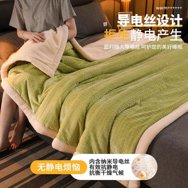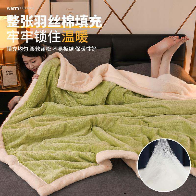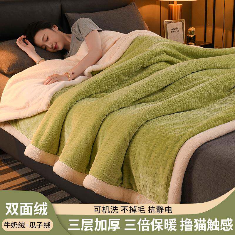 📚 2024-09-冬季毛厚盖毯被子加三层棉毯夹珊瑚法兰绒沙发午睡毯办公