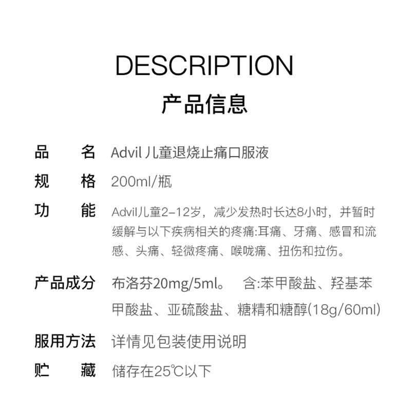📚 进口Advil澳洲儿童布洛芬退烧药退热口服液感冒药流感混悬液200ml