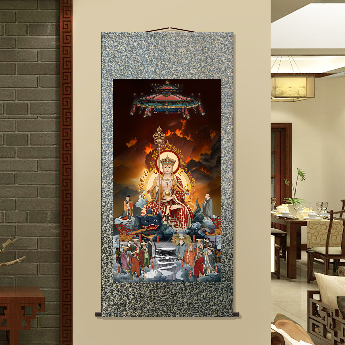 📚 十殿阎王朝地藏画像阎罗王地藏王菩萨挂画道士法师道场用丝绸卷轴