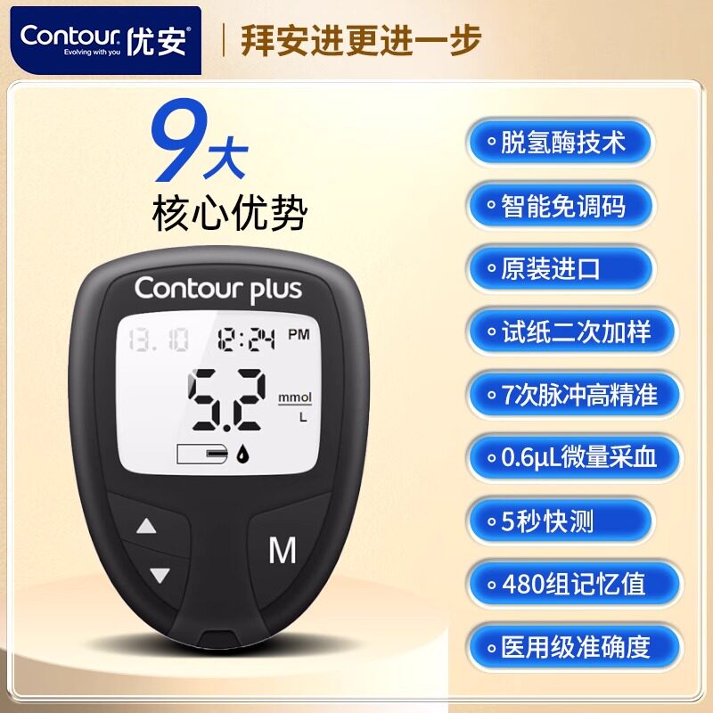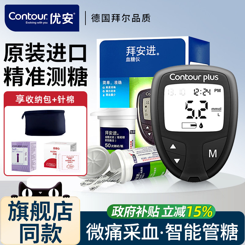 📚 拜耳拜安进血糖仪家用进口高精准医用老人控糖孕妇血糖测试仪试纸