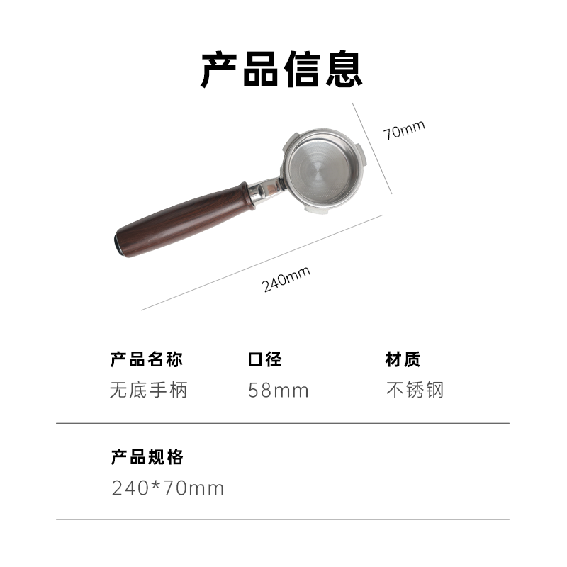 📚 露茉58mm无底手柄不锈钢木纹握把咖啡机配件器具