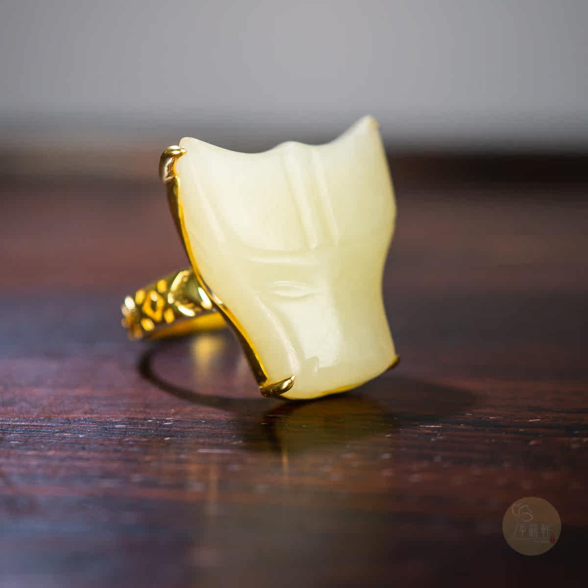 📚 独家设计古玉戒指商代和田玉牛头型玉佩18k黄金镶嵌古珠保真真品