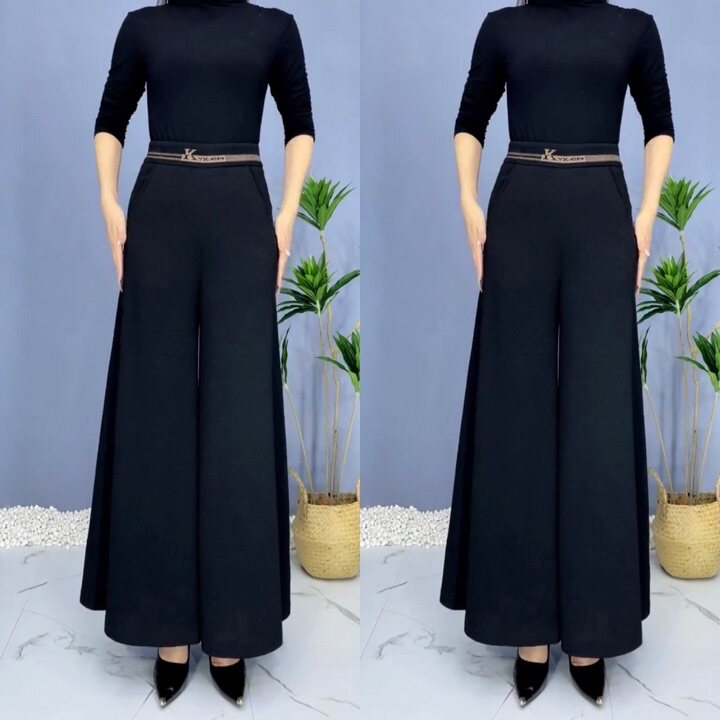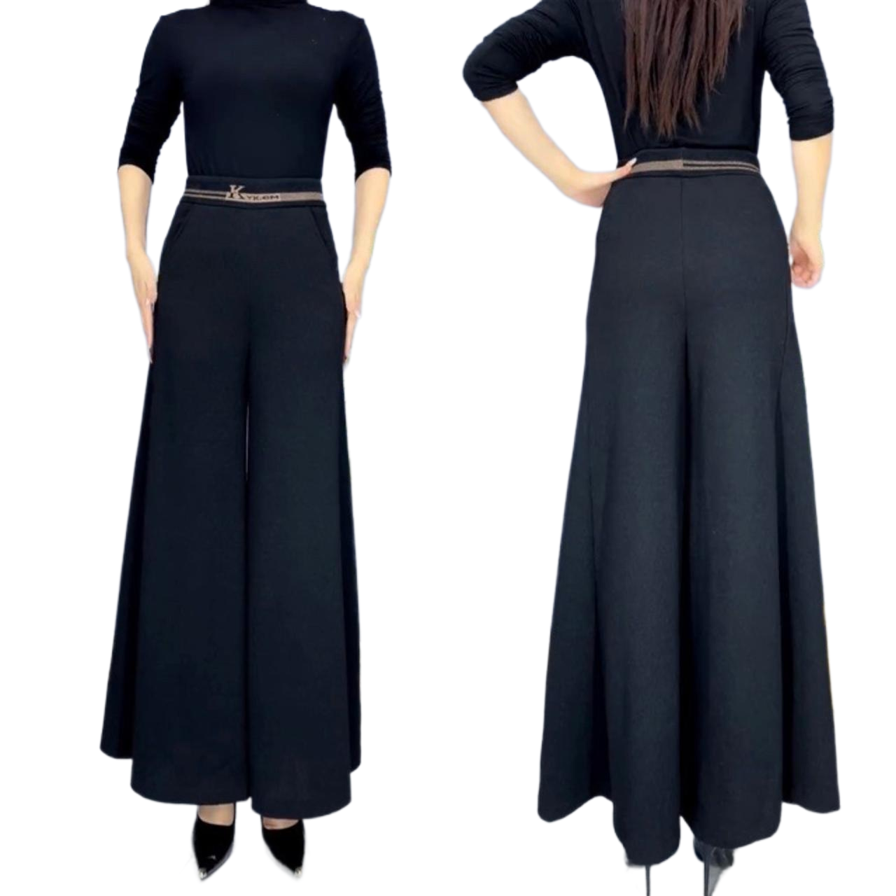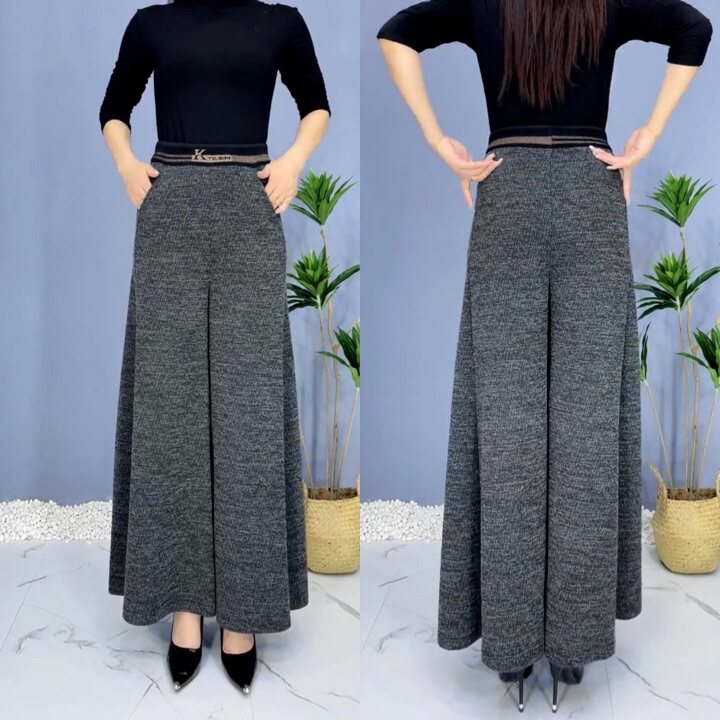 📚 女士秋冬羊绒大摆裙裤中老年秋季阔腿裤弹力妈妈垂感加厚大脚口袋
