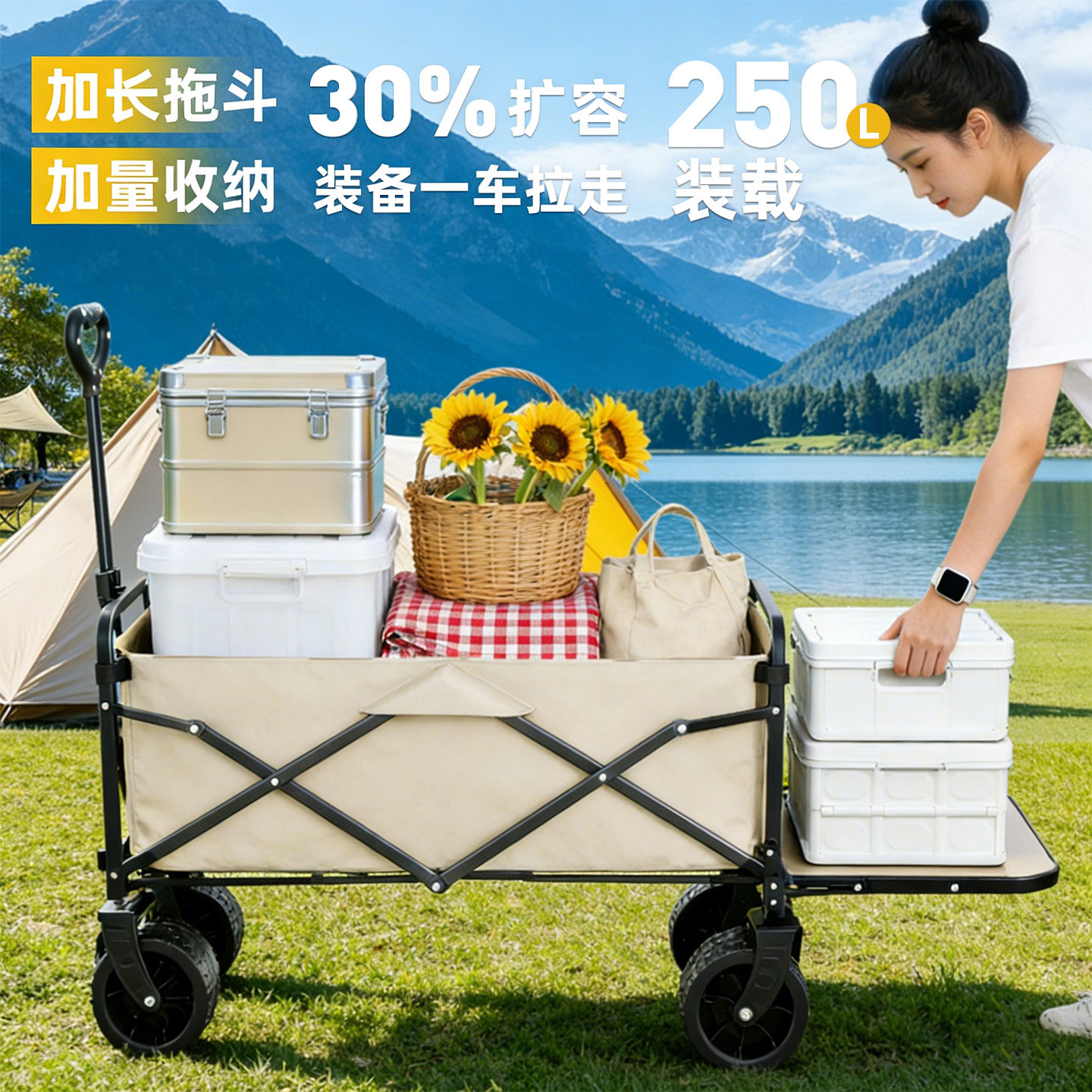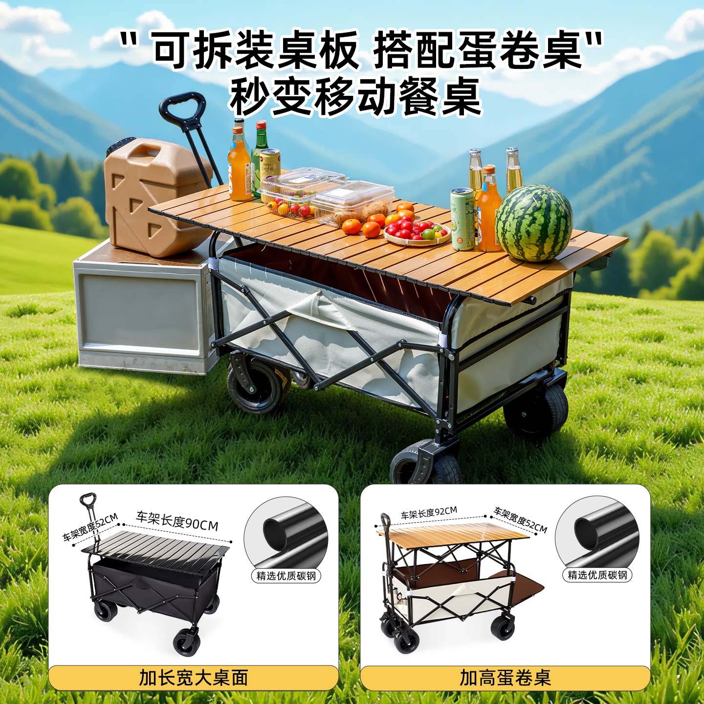 📚 户外露营车可折叠手推车大号旅行野营拖车儿童可躺摆摊便携小拉车