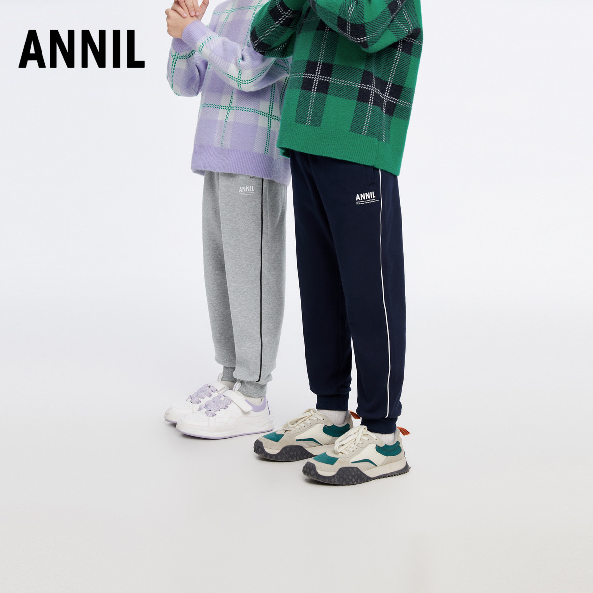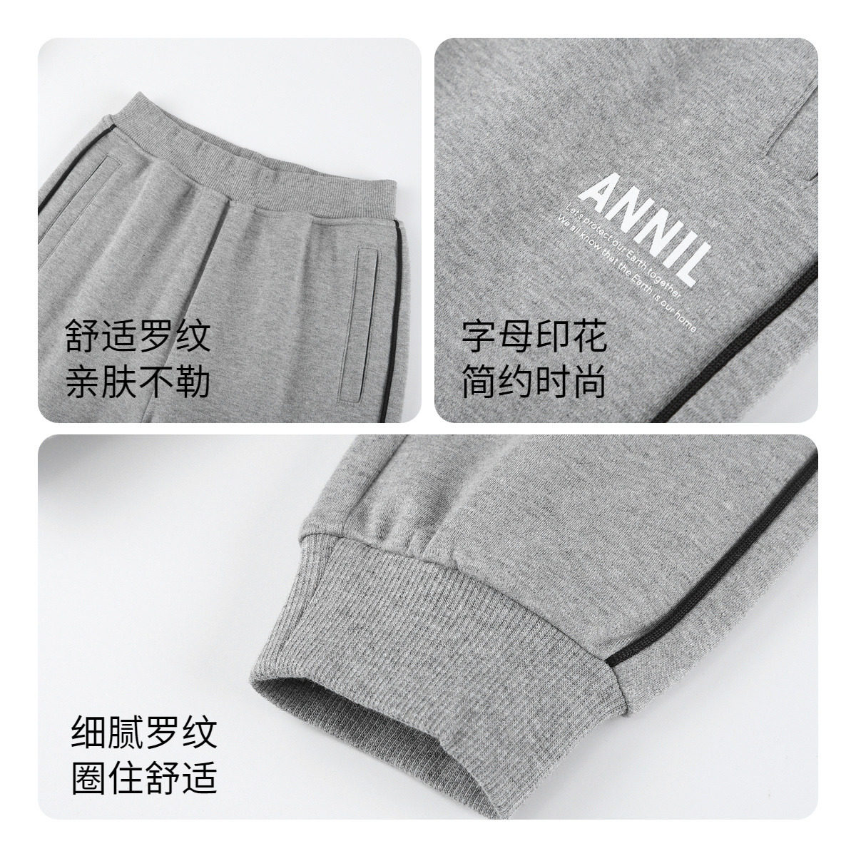 📚 安奈儿男女童装全腰针织单裤2025秋新款运动休闲束脚活力罗纹长裤