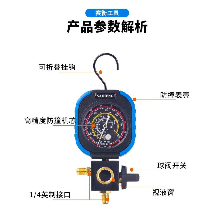 📚 赛衡球阀机械单表R22R134aR410AR32冷媒加氟表雪种硅油单表加液表