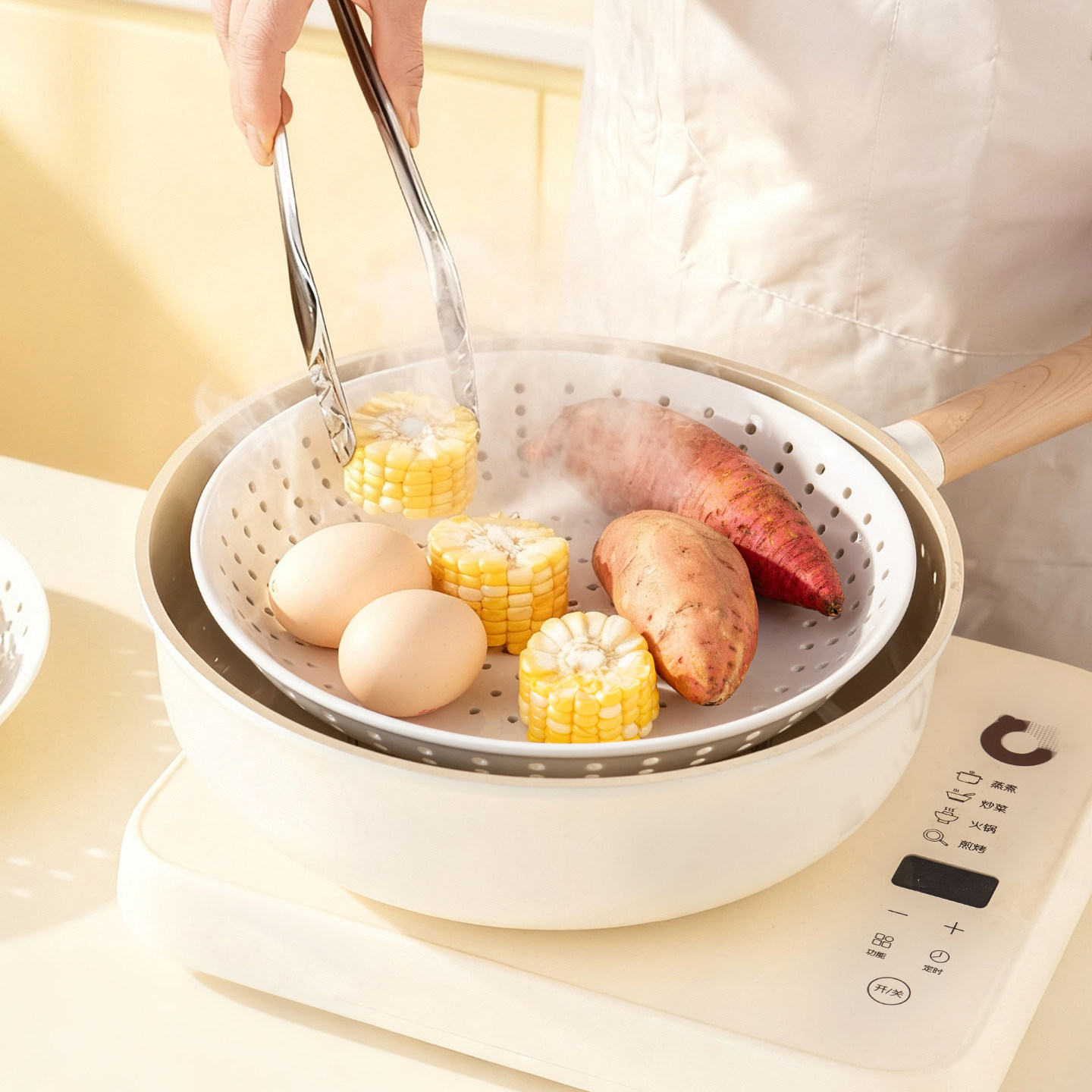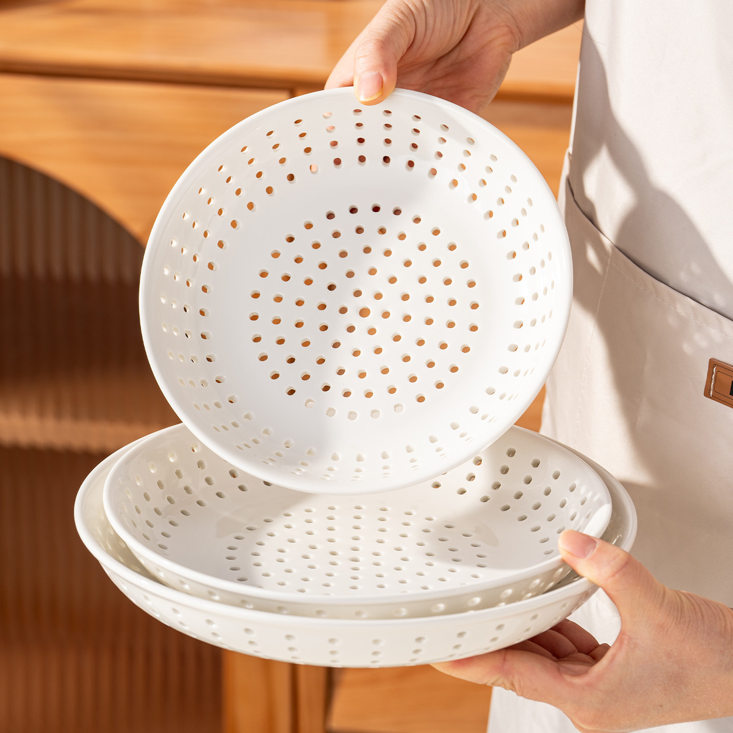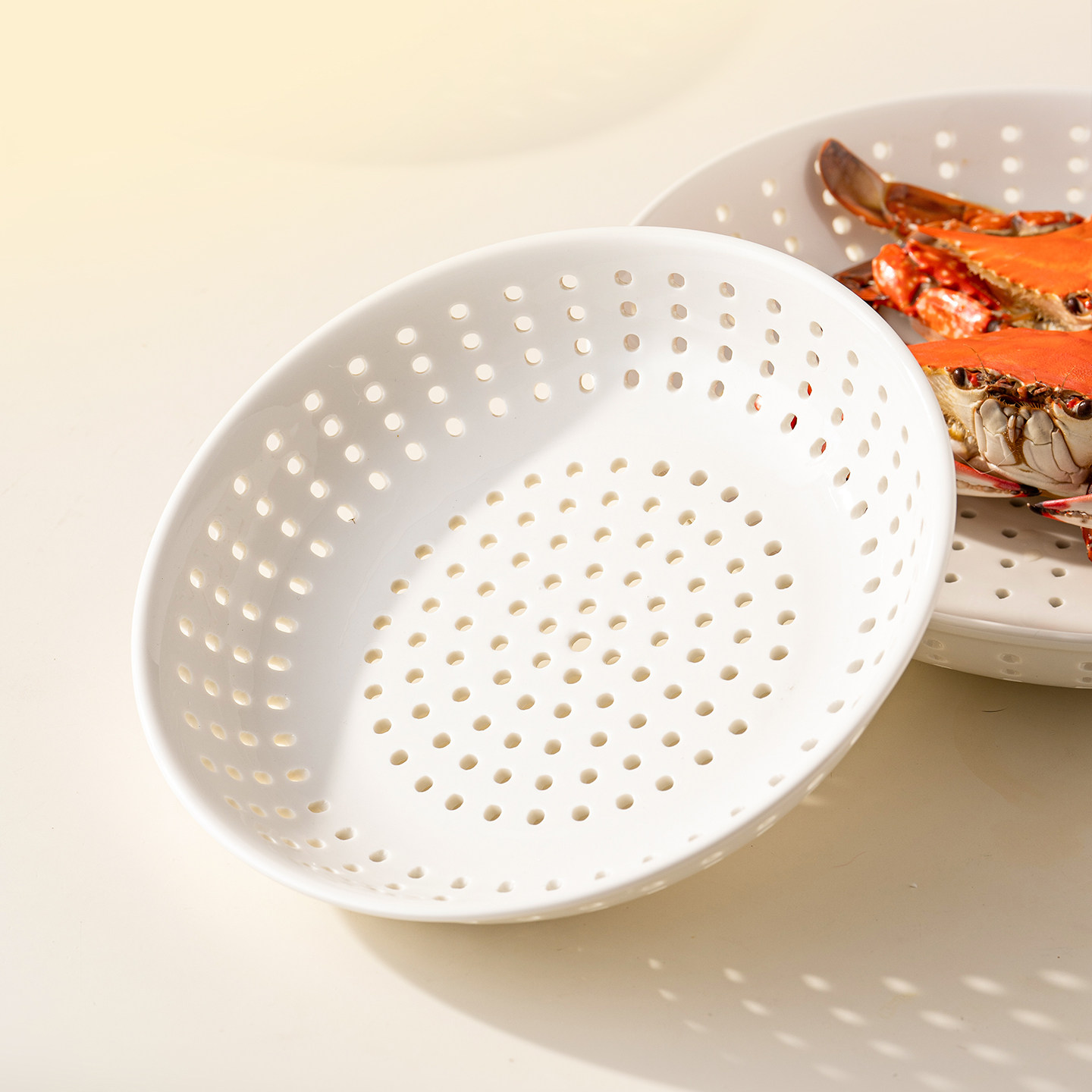 📚 onlycook陶瓷多孔蒸盘圆形微波炉加热带孔蒸架蒸格蒸笼蒸饺子盘子