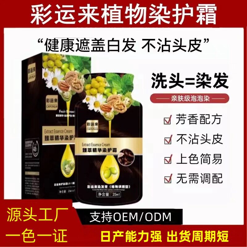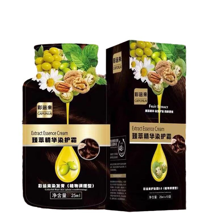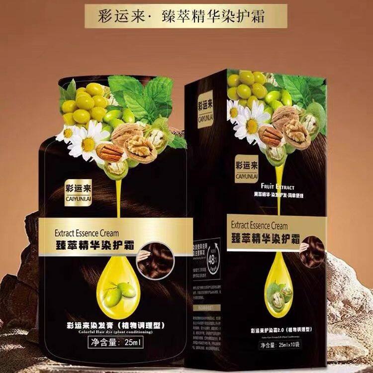 📚 彩运来植萃染发剂植物亲肤级染发膏袋装免票自己在家染彩色盖白发