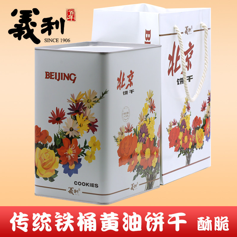 📚 北京特产百年义利黄油饼干酥性饼干盒装铁桶休闲零食传统回忆美食