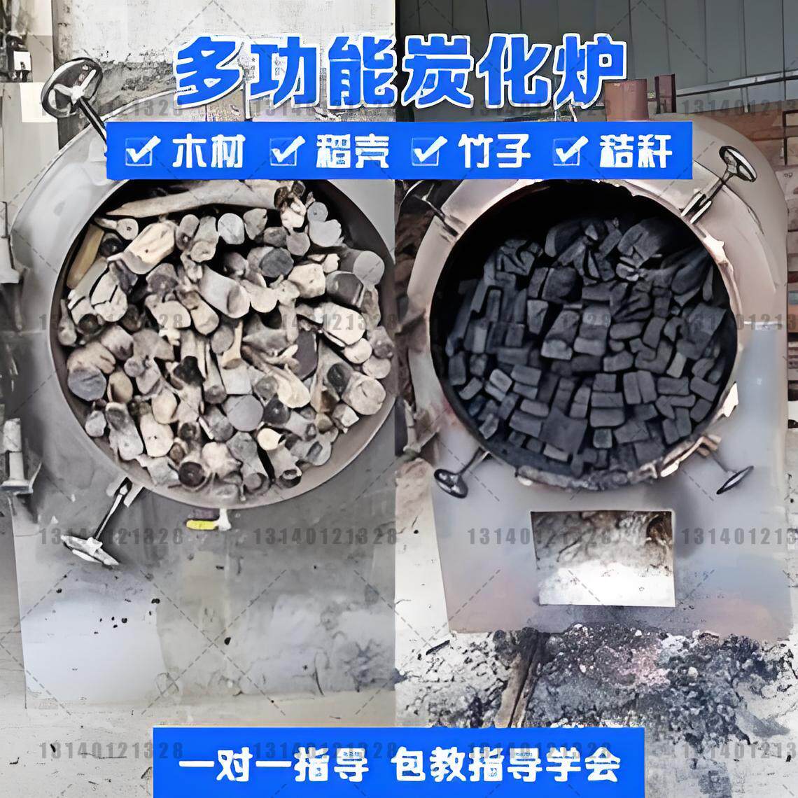 📚 家用卧式炭化炉 树枝木材碳化炉 原木果木碳化机青冈木炭化炉