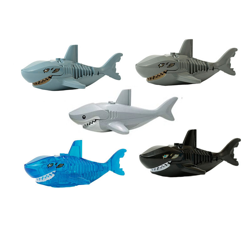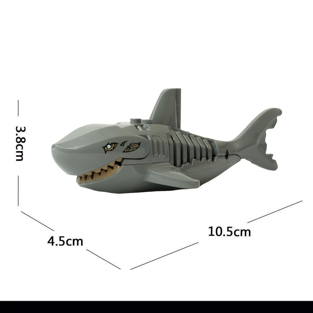 📚 鲨鱼小颗粒积木 大白鲨 巨齿鲨僵尸鲨鱼动物模型拼装益智儿童玩具