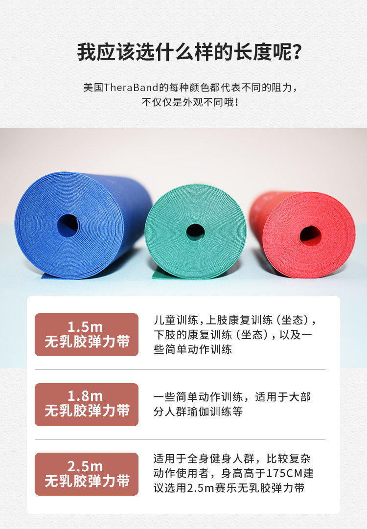 📚 美国Thera-Band赛乐无乳胶弹力带阻力带力量训练带瑜伽健身拉力带
