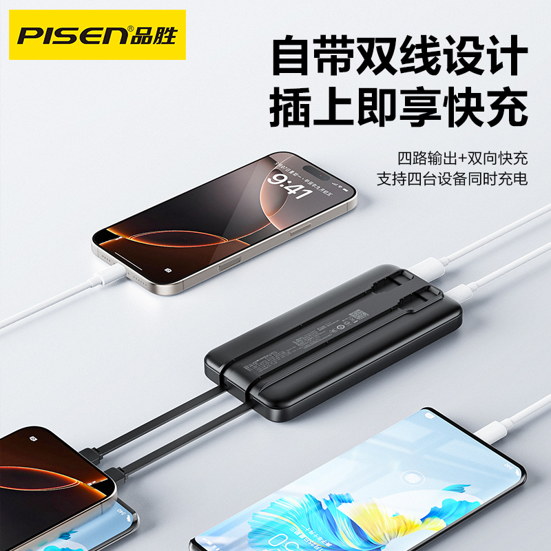 📚 【3C认证可登机】品胜10000毫安充电宝自带双线快充适用于iPhone13苹果17华为荣耀OPPO小米安卓手机平板充电