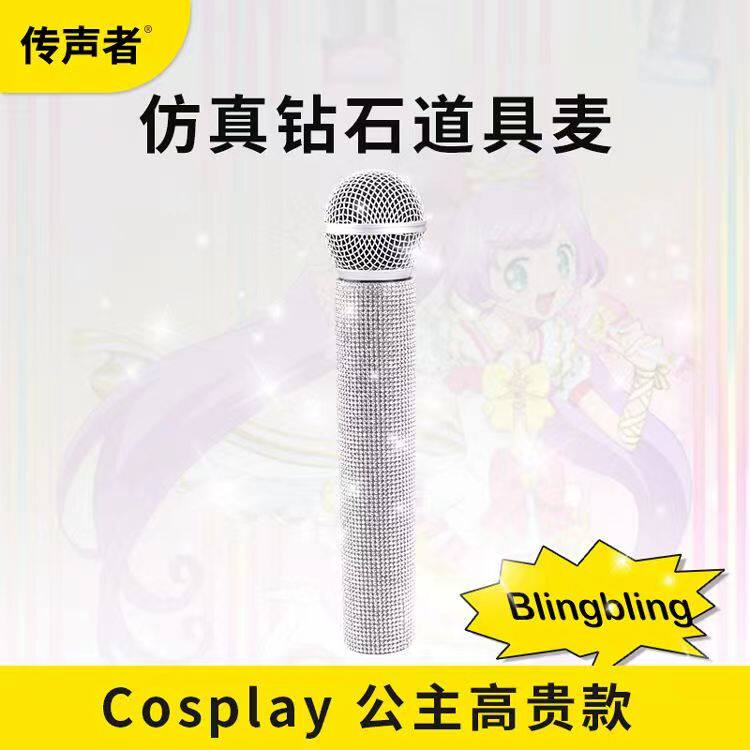 📚 假话筒道具儿童玩具带钻直播唱歌拍摄表演仿真手持镶钻麦克风模型