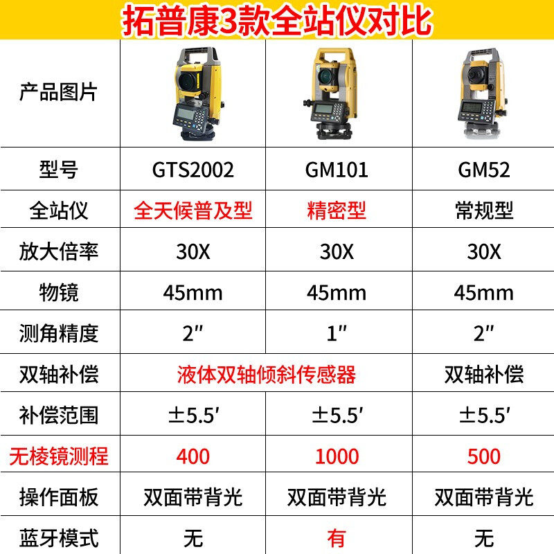 📚 拓普康全站仪GM52高精度免棱镜2秒放样测量日本进口拓普康GTS2002