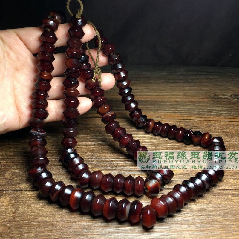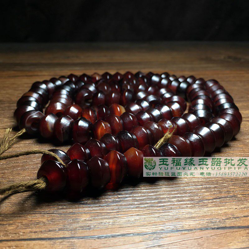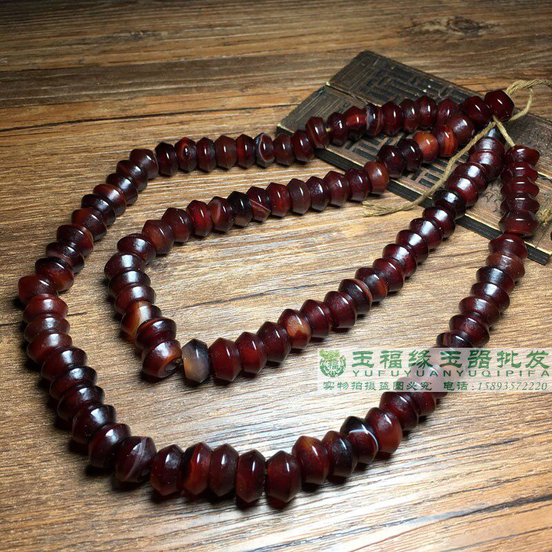 📚 古玩包浆橘皮纹大孔酒红老玛瑙飞蝶珠陀螺珠项链散珠串108配珠