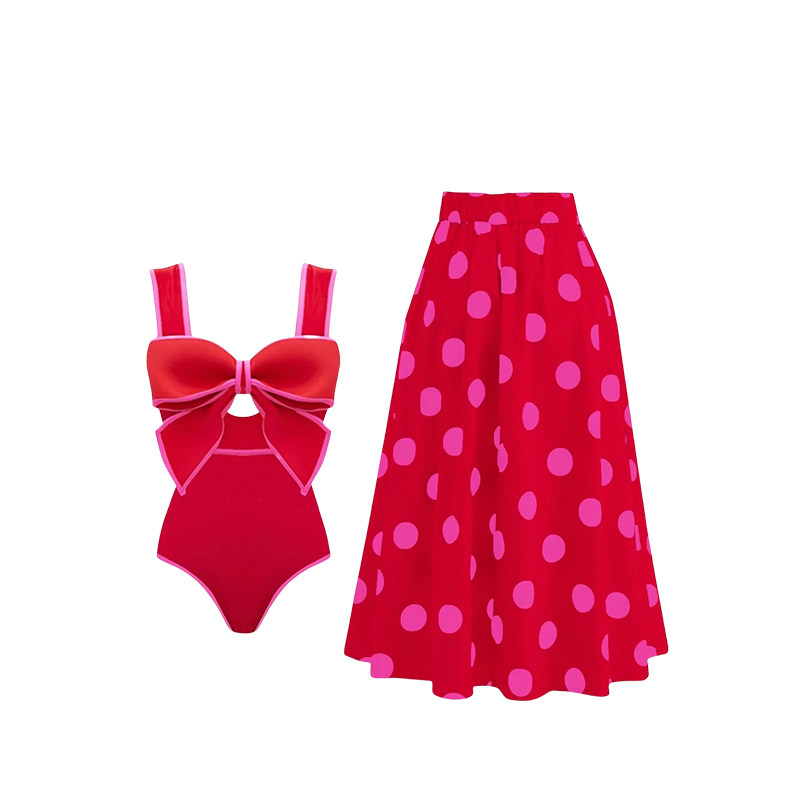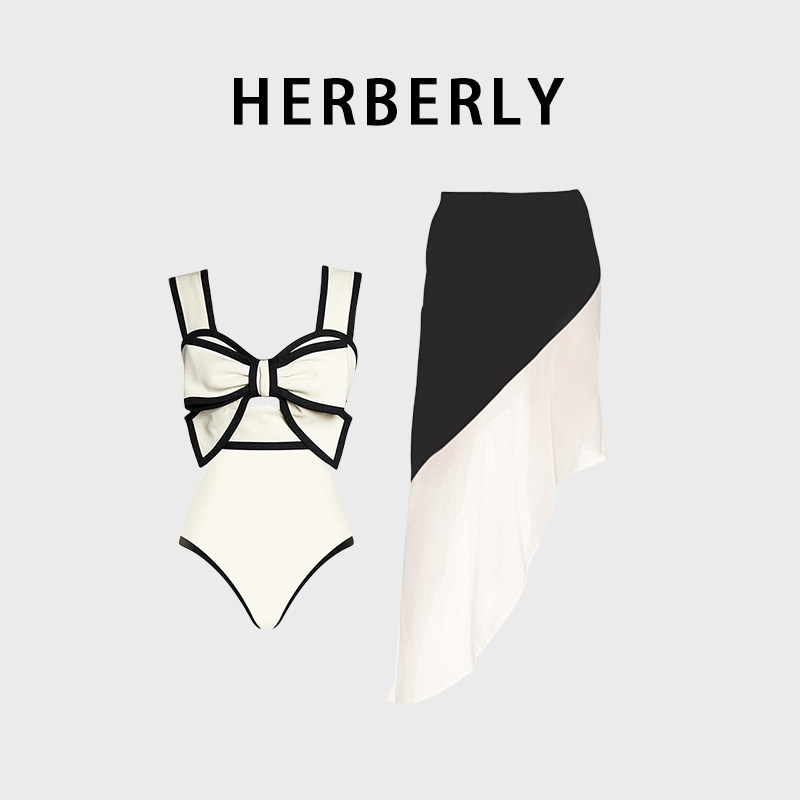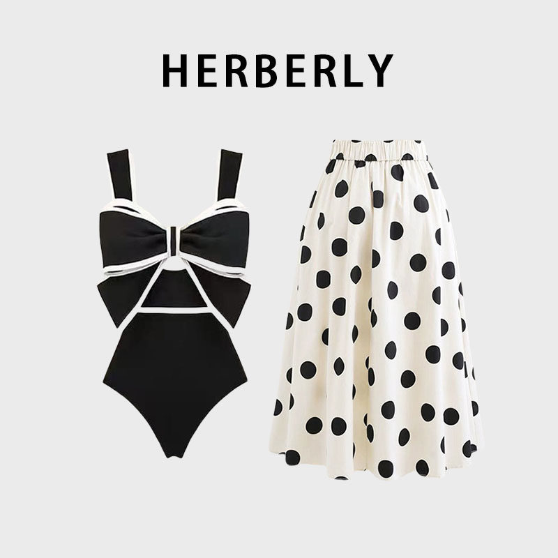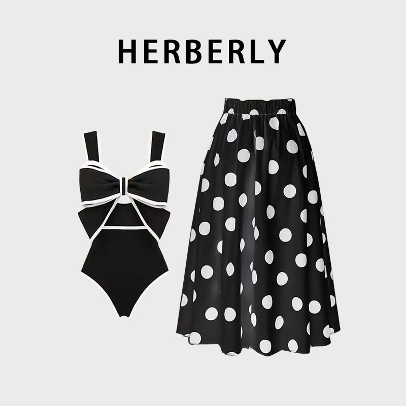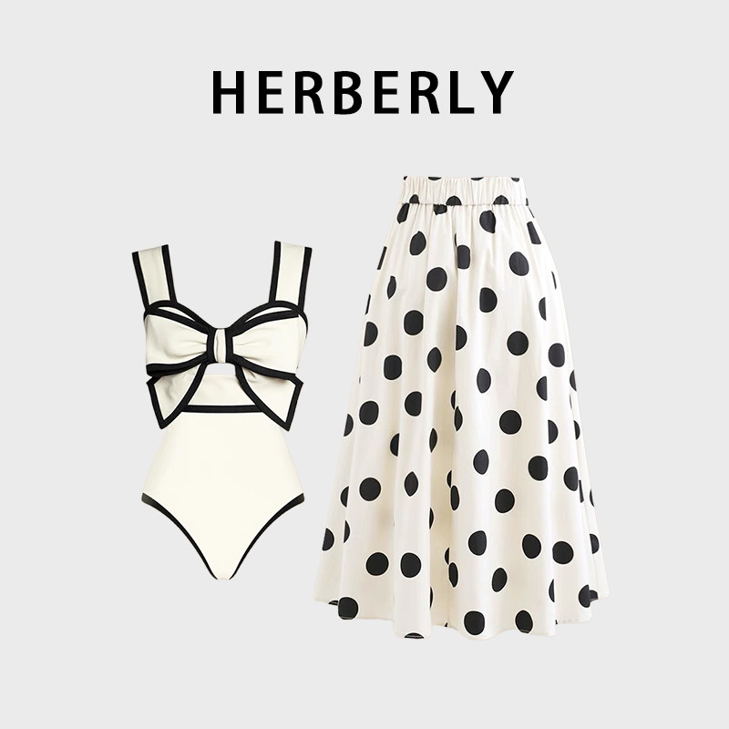 📚 HERBERRY泳装纯欲显白显瘦连体裙式泳衣波点海边泡温泉度假比基尼