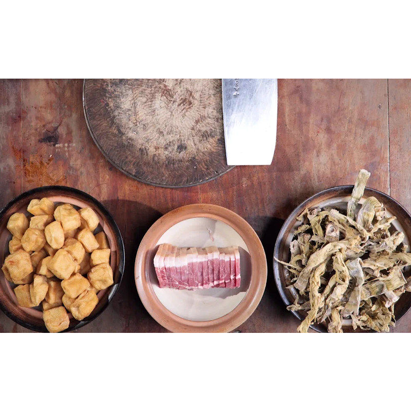 📚 徽州三宝正宗安徽黄山特产火腿煨三宝酒店徽菜食材火锅油豆腐衣笋
