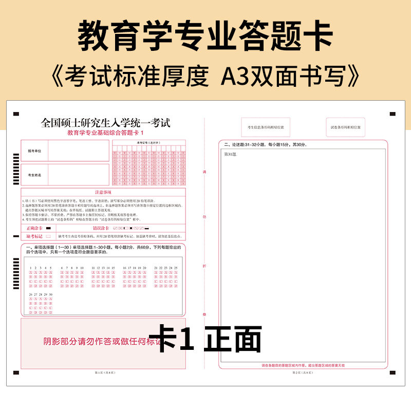 📚 2026新大纲研究生考试教育学答题卡333自命题专业课基础综合答题纸 A3双面 120克双胶 质量媲美考试题卡