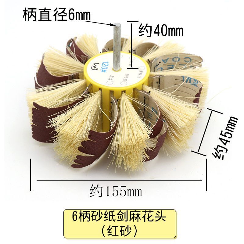 📚 砂纸剑麻打磨抛光花头 手动电钻剑麻砂制抛光轮 砂布抛光刷