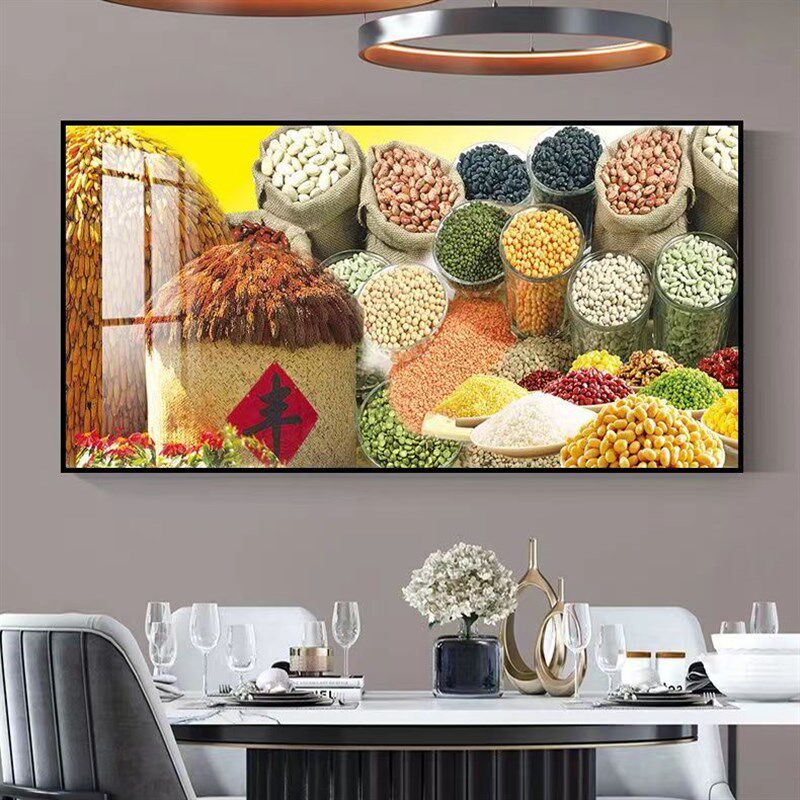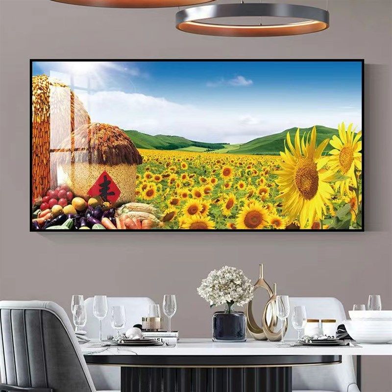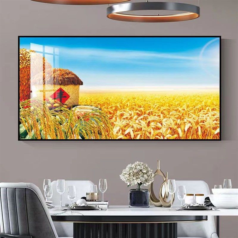 📚 五谷丰登饭店装饰挂画中式金色麦穗餐厅包厢背景墙丰收图竖版壁画