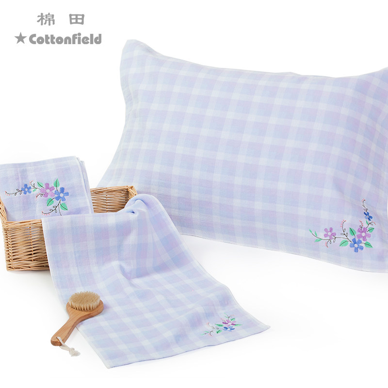 📚 棉田花语纯棉正品双层纱布枕巾透气吸汗成人情侣枕头巾单条Z2409