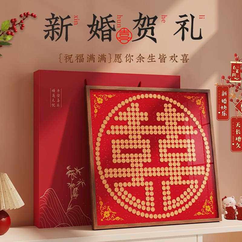 📚 硬币喜字贴实木喜字相框五毛钱硬币模板结婚礼物送新人新婚5角钱