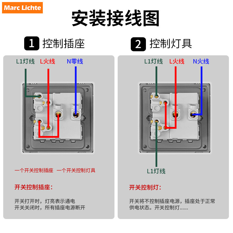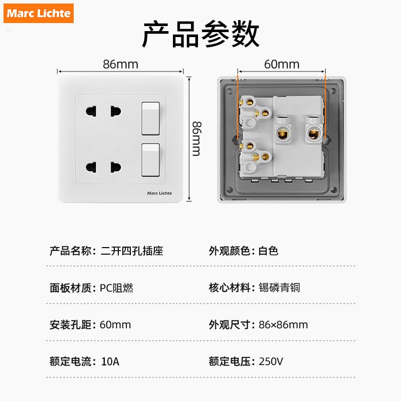 📚 86型二开四孔插座面板二二插带开关两脚墙壁暗装两孔10A电源插座