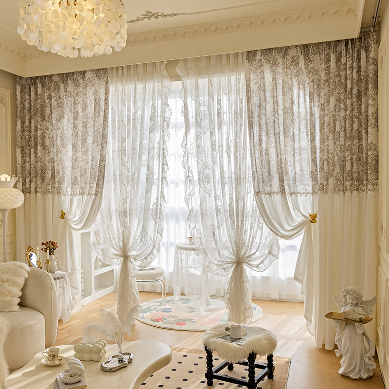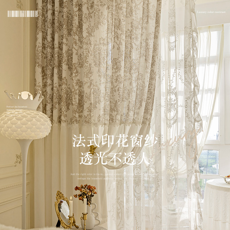 📚 梦幻法式窗帘流光纱帘透光不透人客厅G阳台卧室风轻奢高档窗纱c