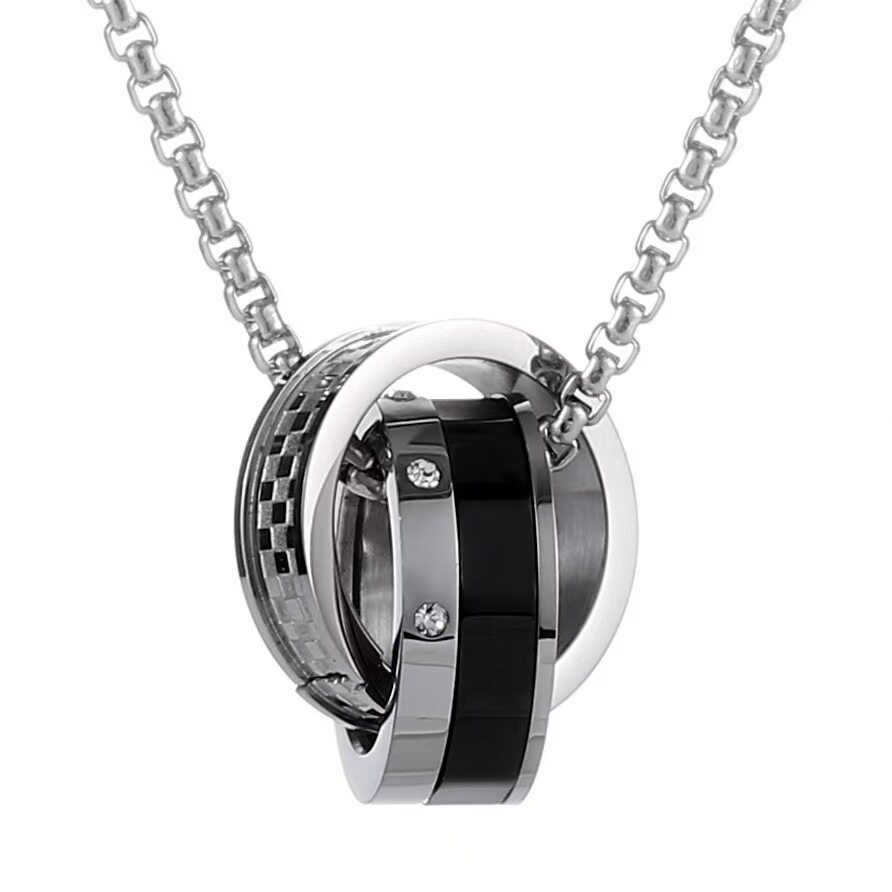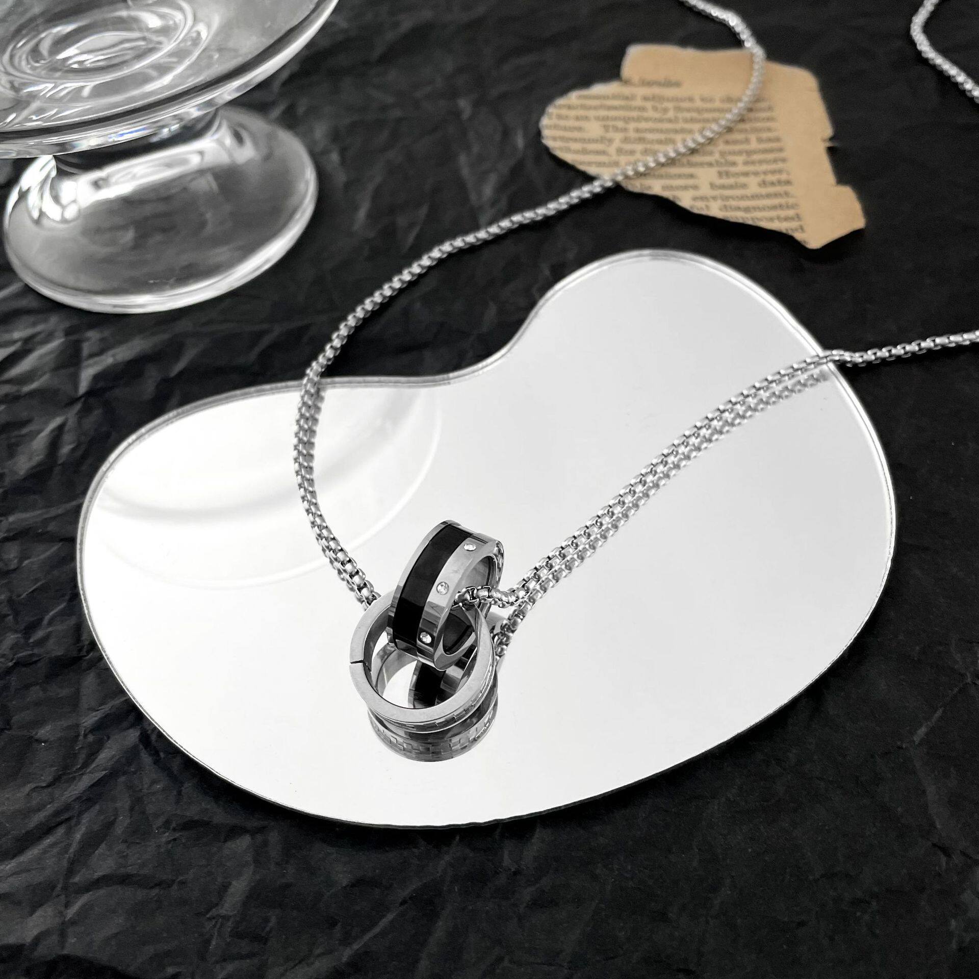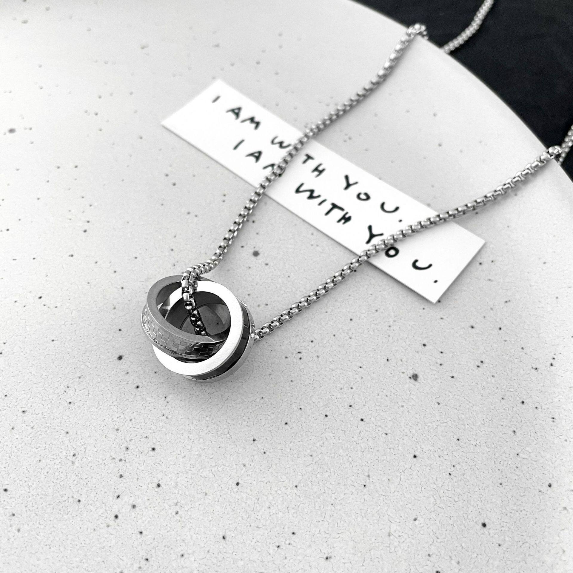 📚 双环钛钢项链男士潮牌百搭嘻哈森系王一博同款男生毛衣链痞帅吊坠