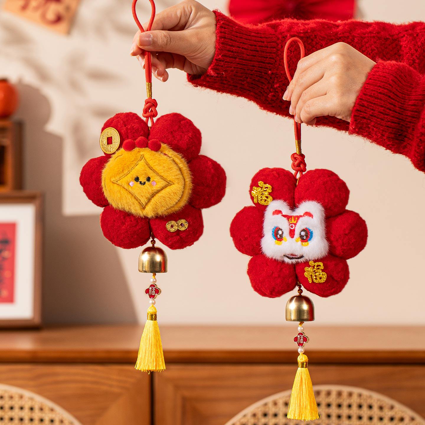 📚 2026新年装饰品毛球小挂件马年新款过年客厅玄关门把手挂春节挂饰