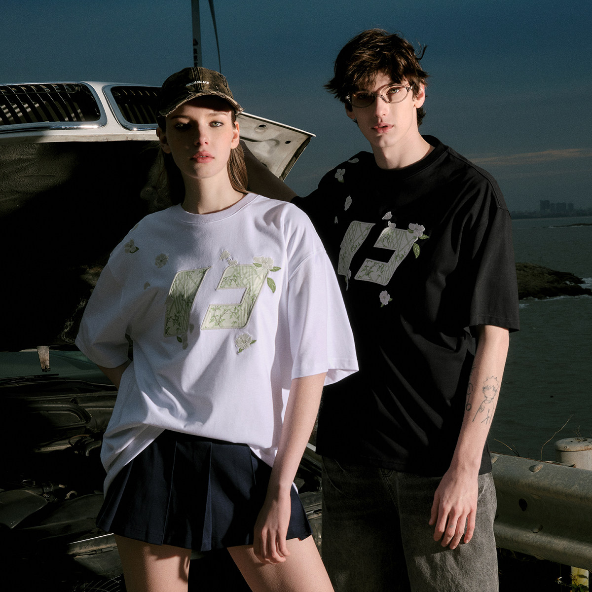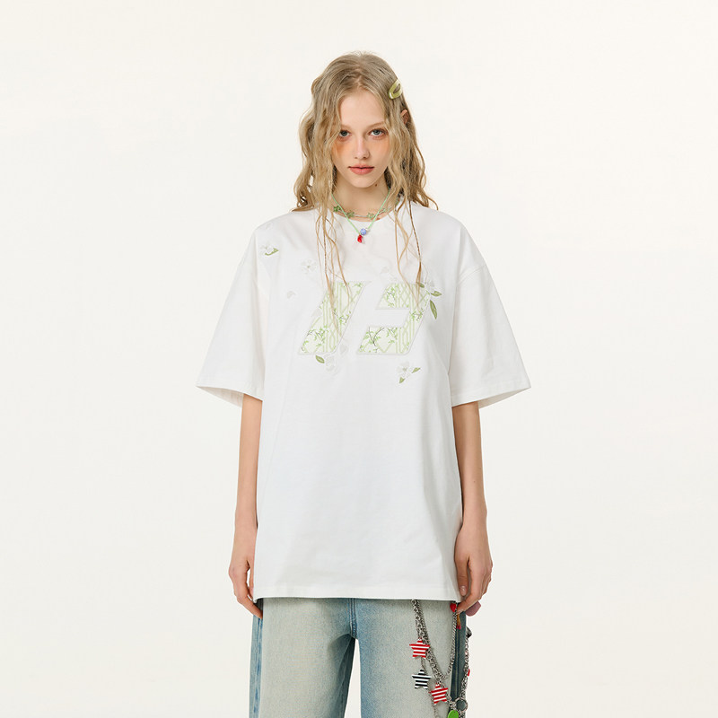 📚 黄子弘凡同款FORNINES花伴竹刺绣短袖T恤男女情侣潮牌夏季半截袖
