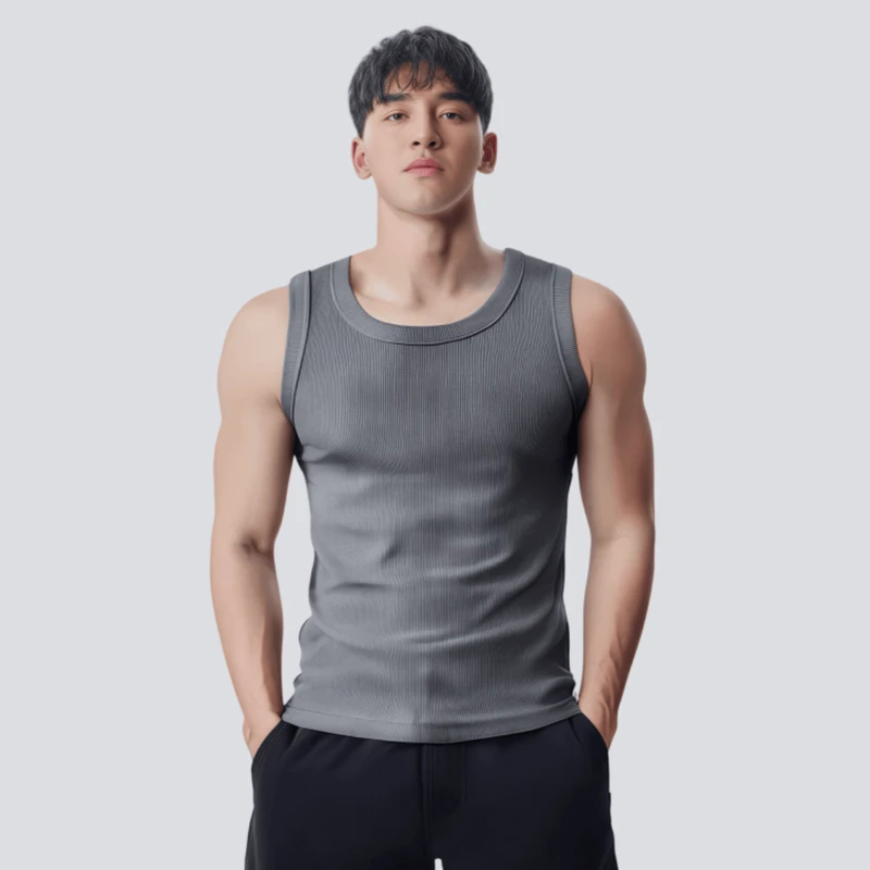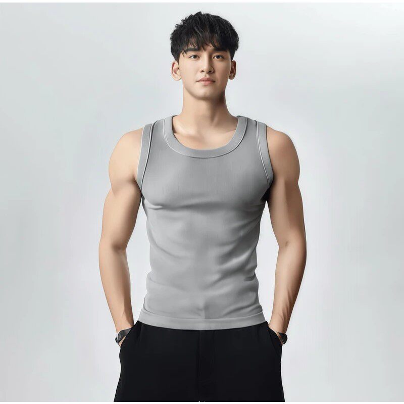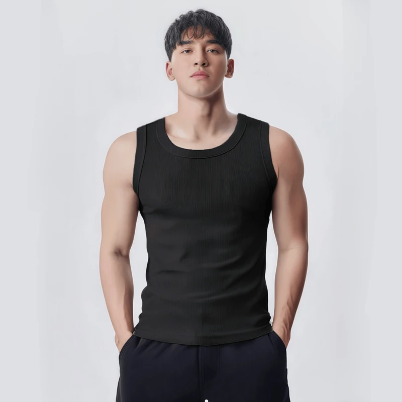 📚 夏季美式男款运动健身粗螺纹打底背心修身透气纯色宽肩高弹无袖