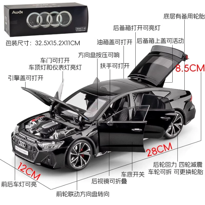 📚 正版1:18奥迪rs7汽车模型合金仿真收藏车摆件遥控玩具车男孩礼物