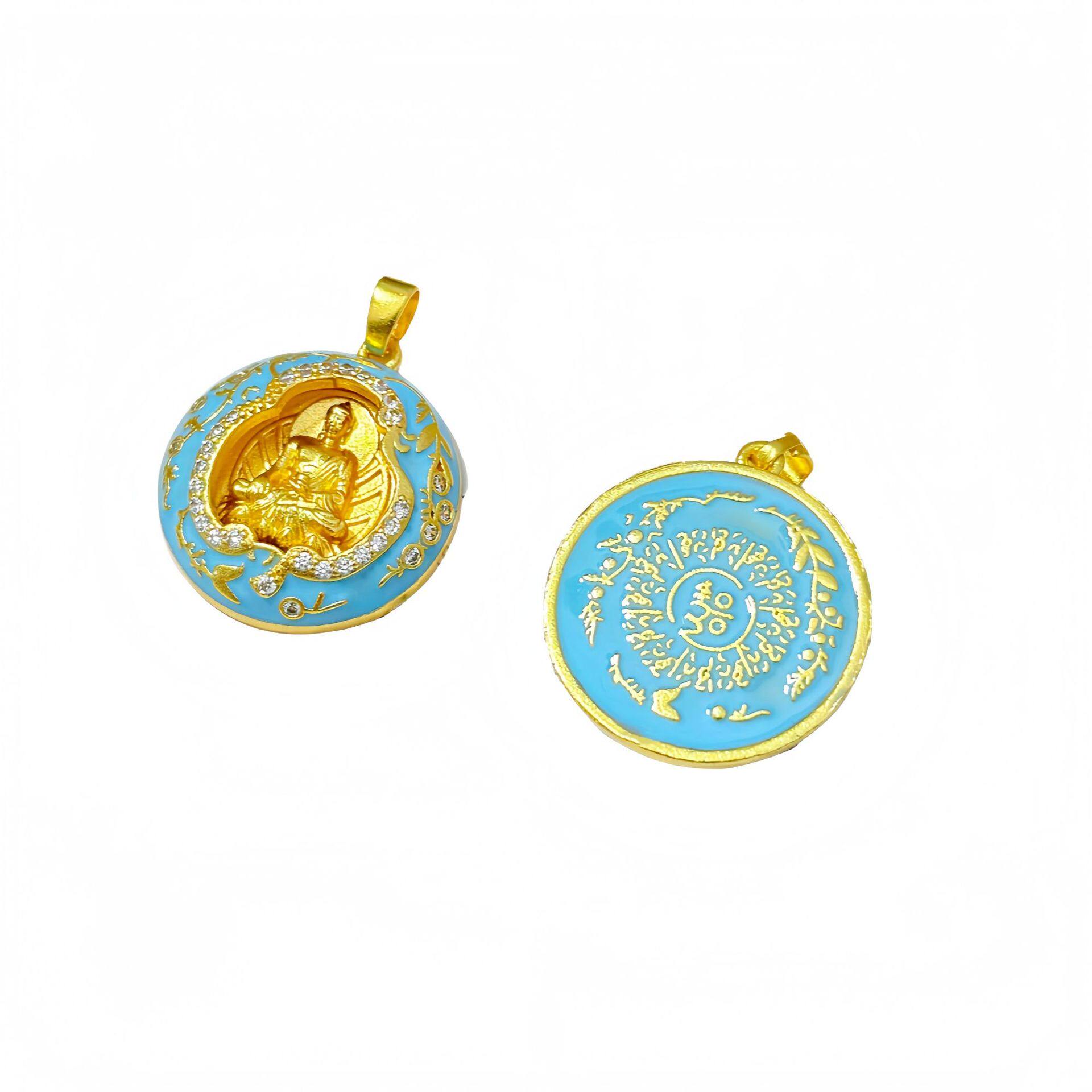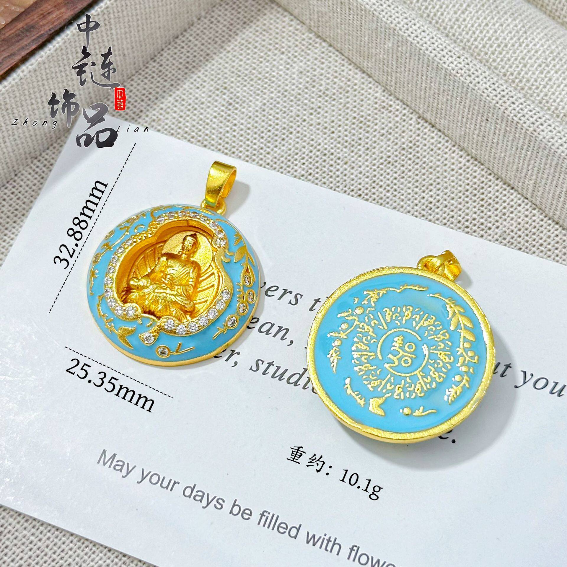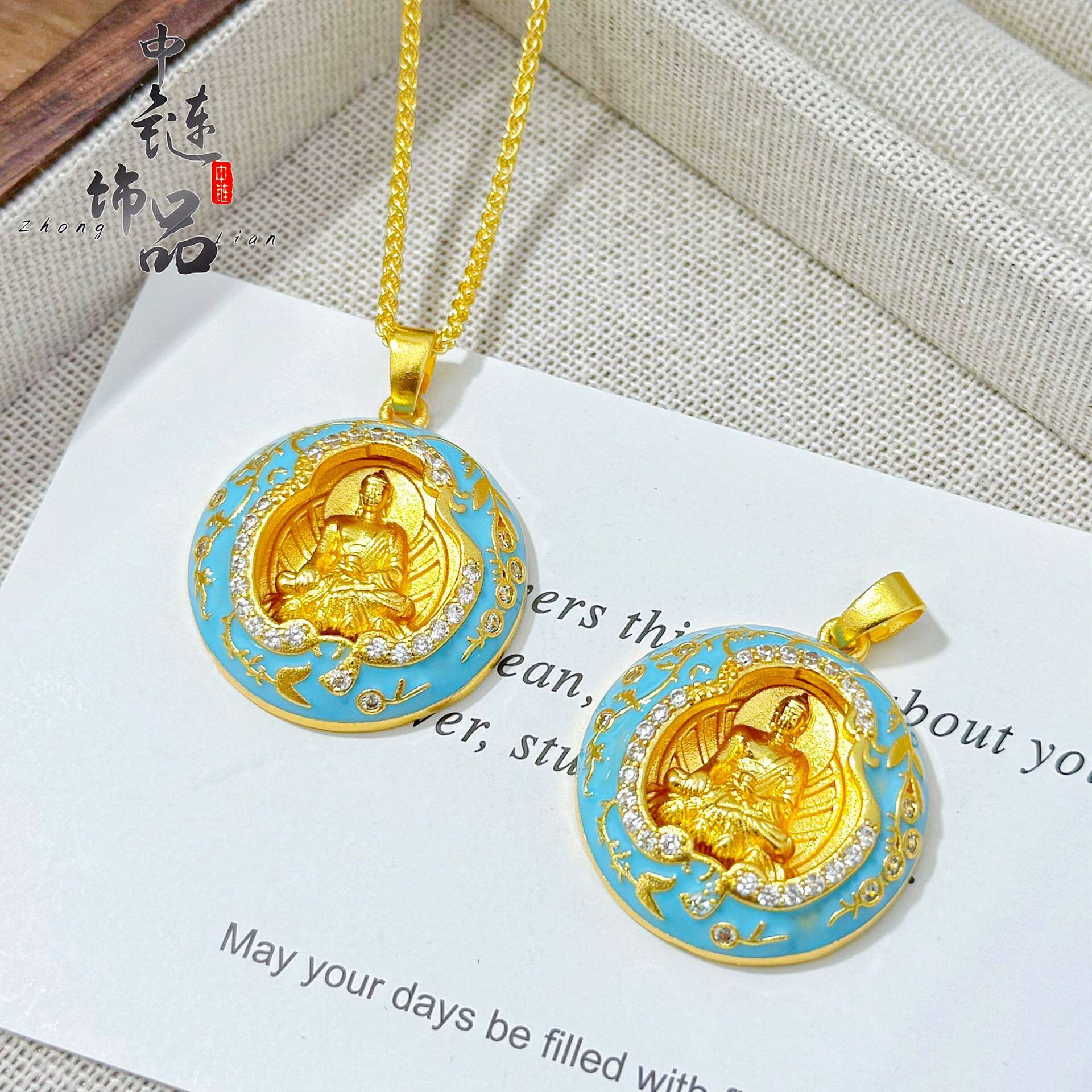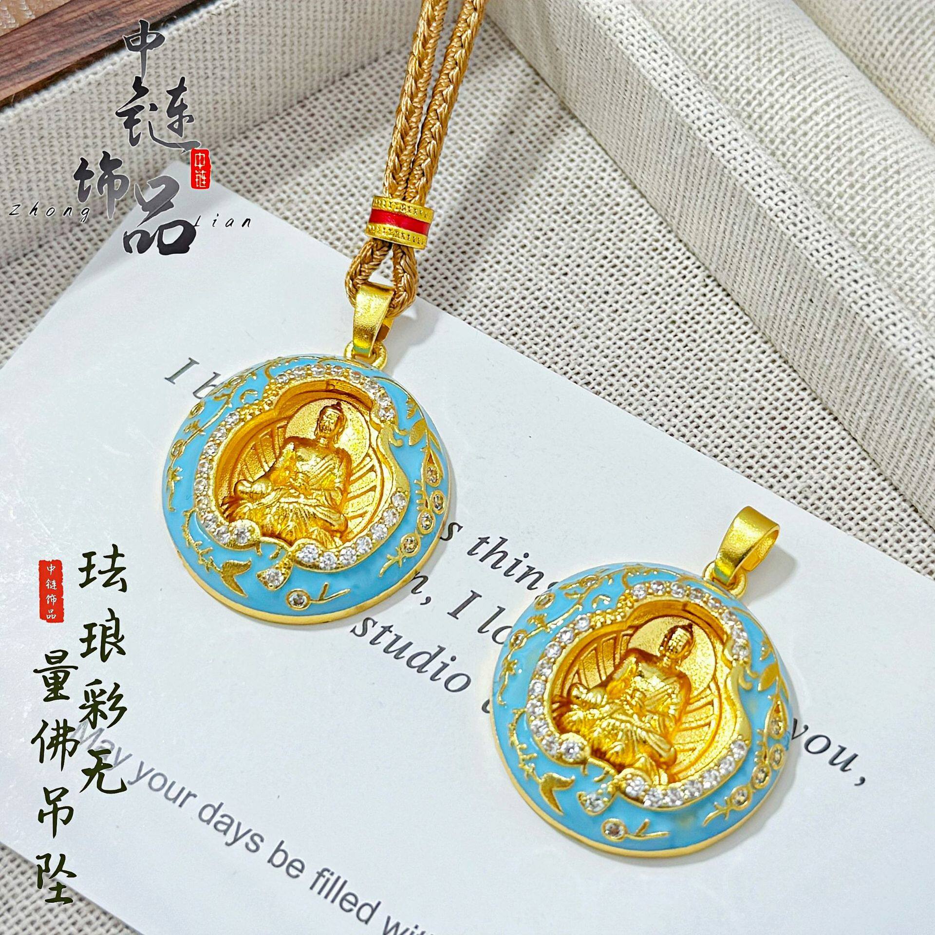 📚 金店同款古法沙金珐琅彩镶钻无量佛吊坠新中式复古本名佛吊坠
