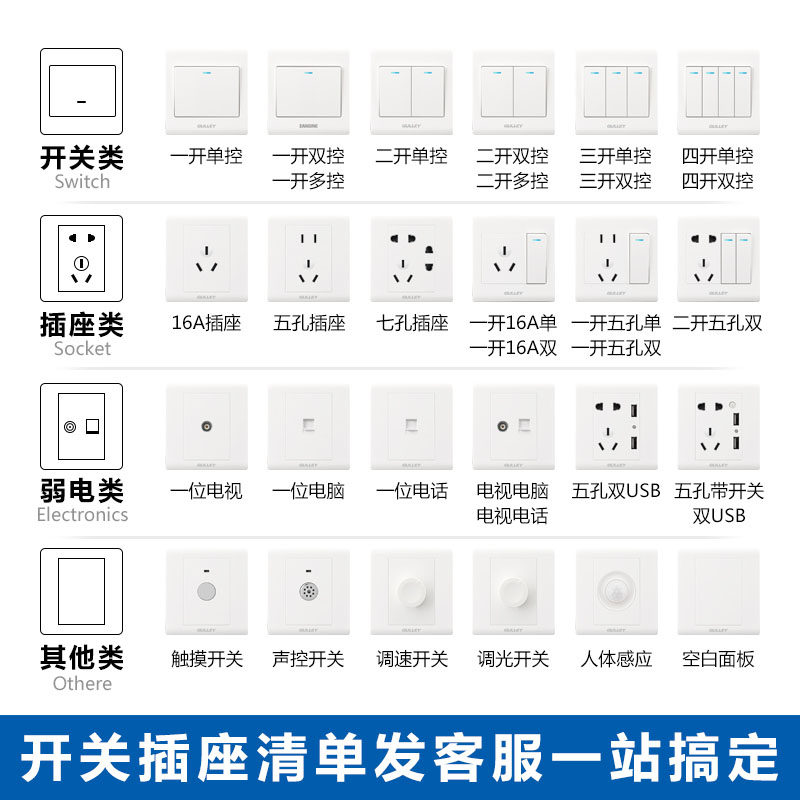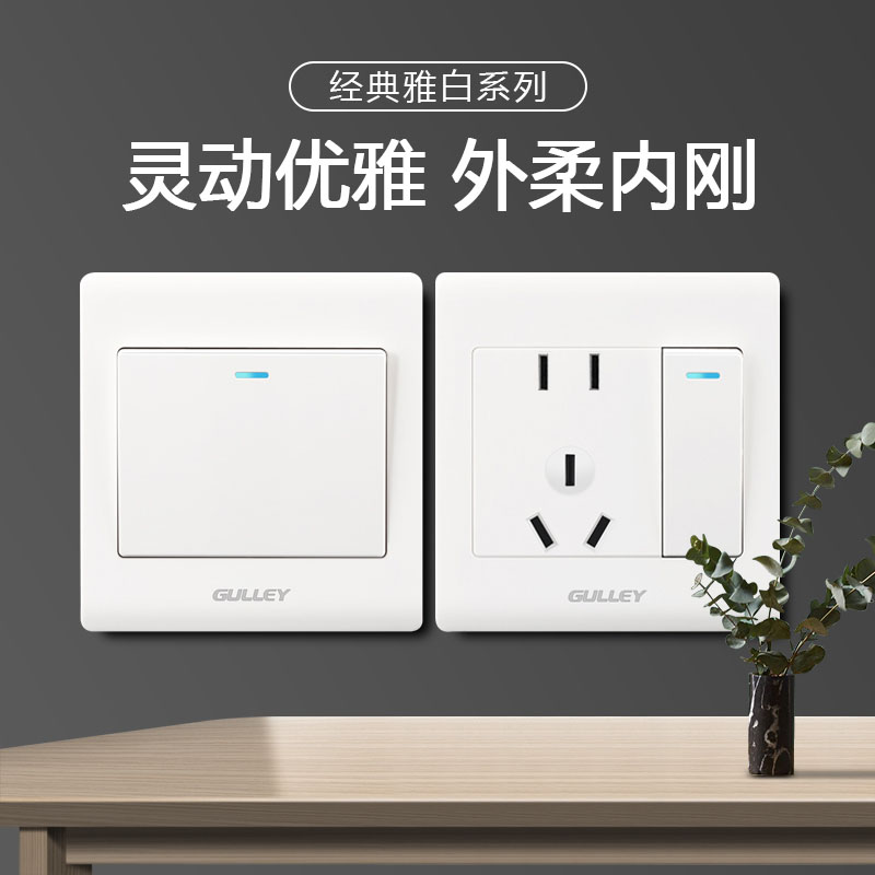 📚 国际电工86型墙壁雅白开关插座面板暗装一开单控五孔电源插1开5孔