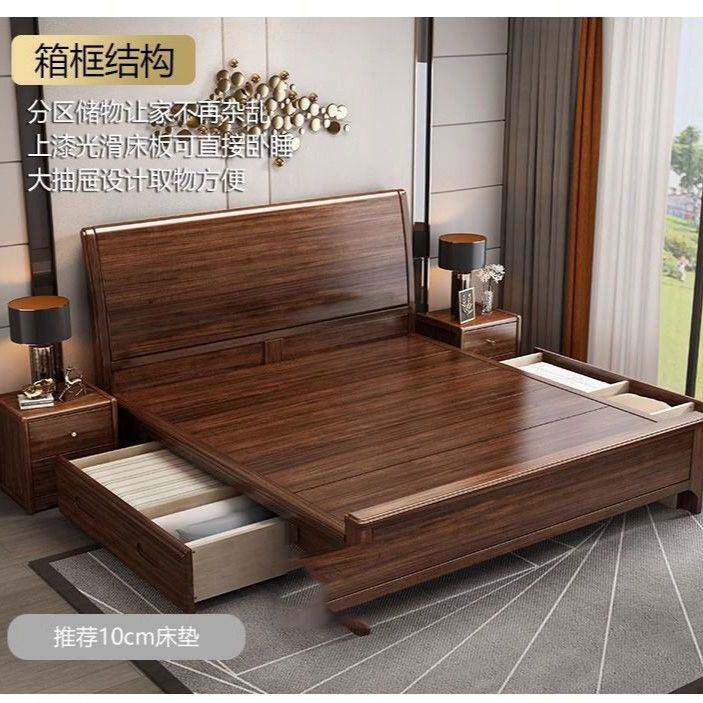📚 胡桃木床全实木家用箱式床储物床小户型省空间1米5x2米的床双人床