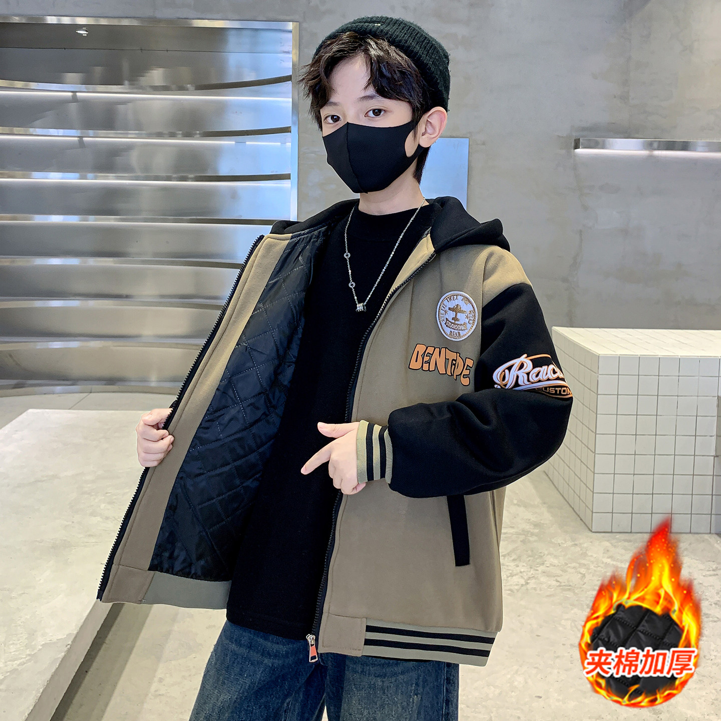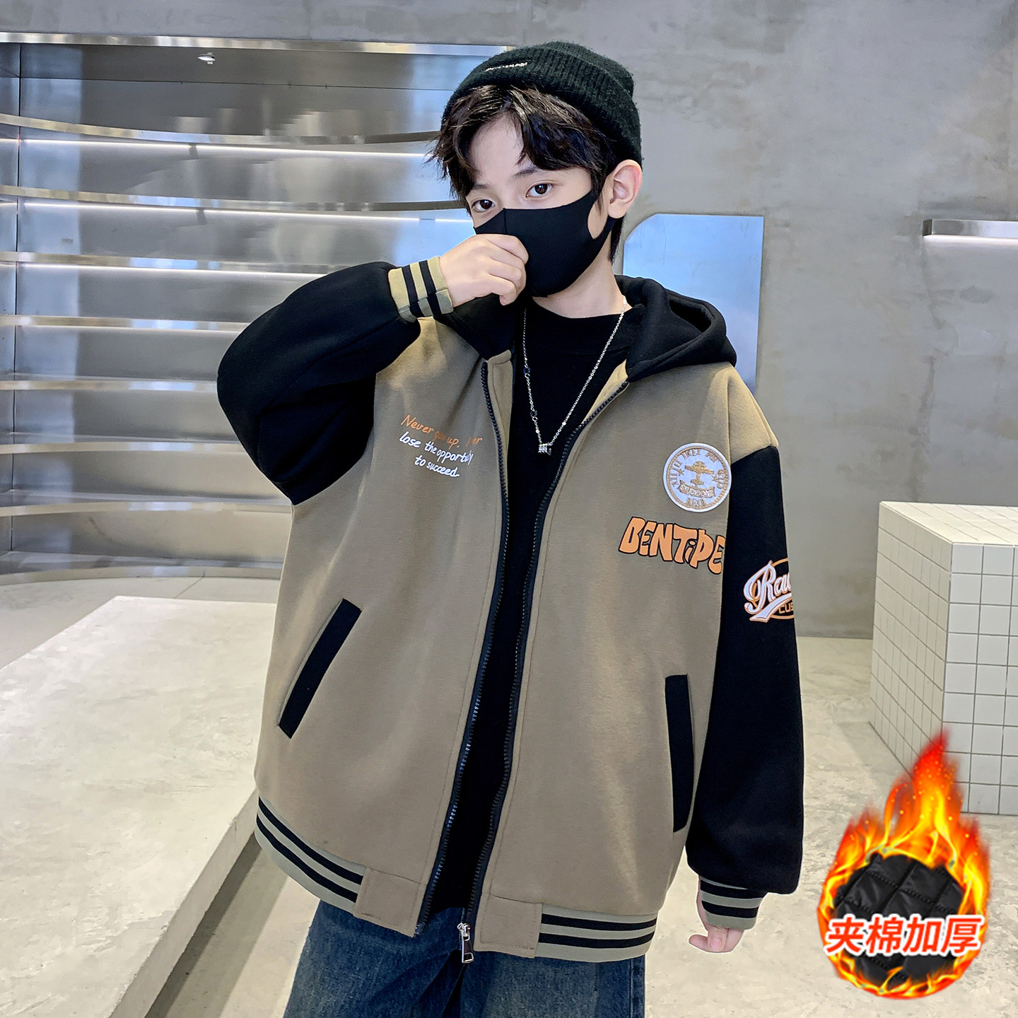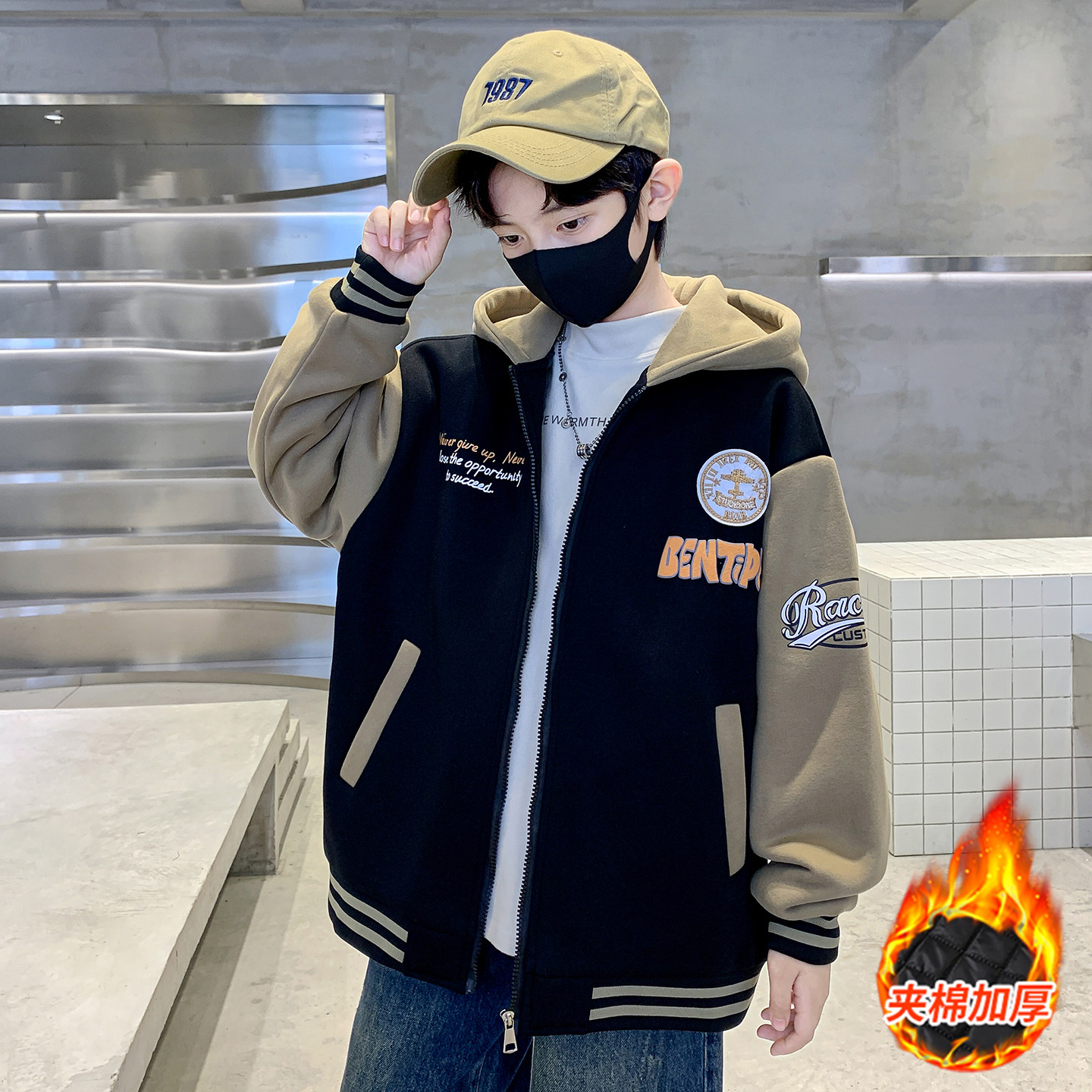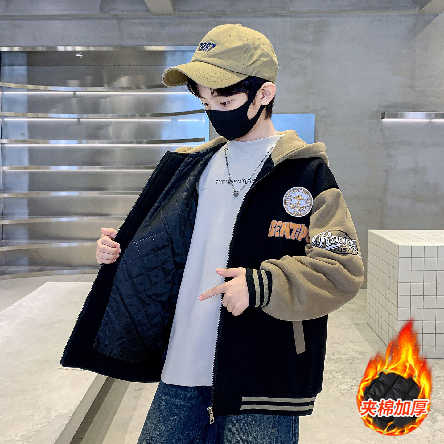 📚 男童夹棉外套秋冬款2025新款中大童春秋季连帽男孩儿童棒球服冬装
