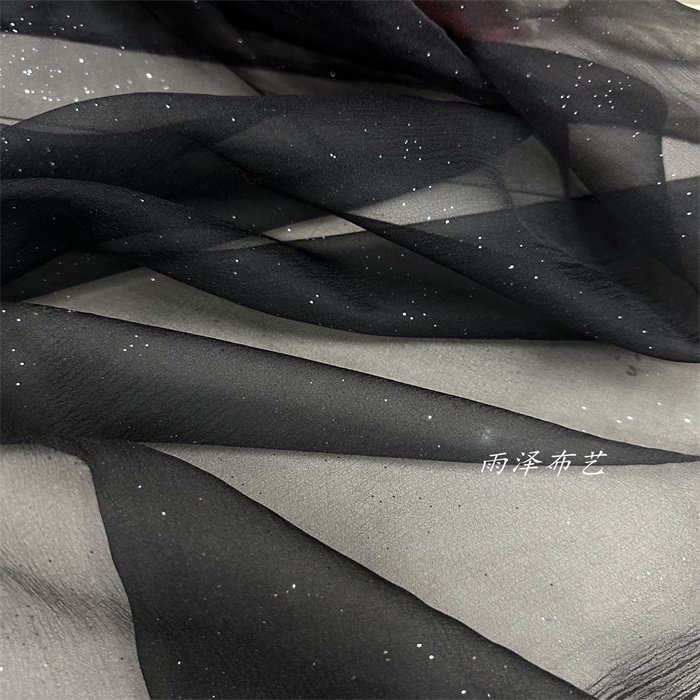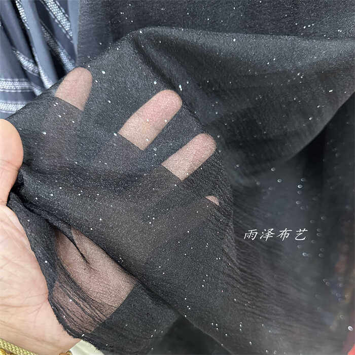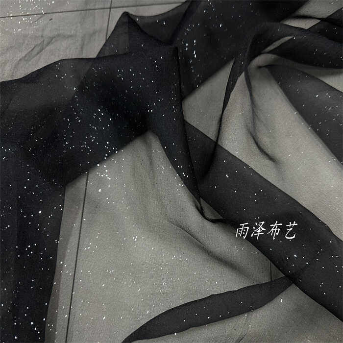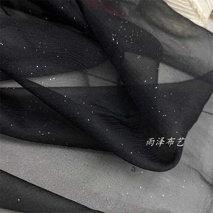 📚 进口黑色烫金闪亮半透欧根纱布料 晚礼服婚纱裙服装设计师布料